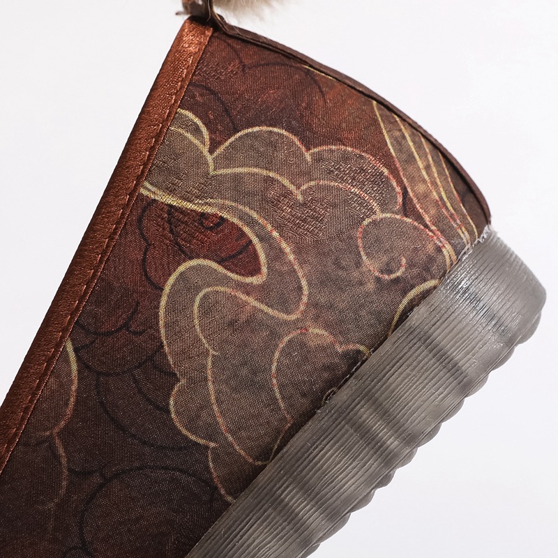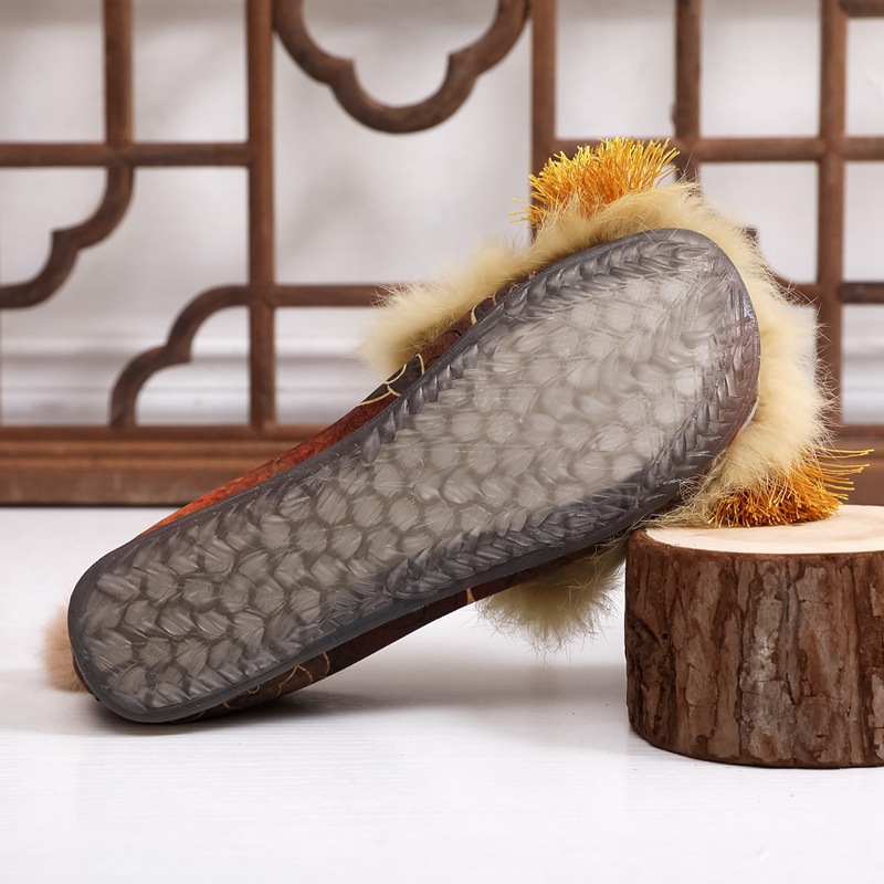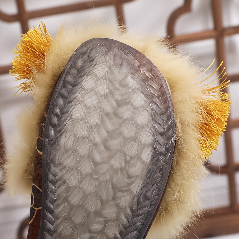 冬の民族風の包頭にベルベットのスリッパの女性の柔らかい底の漢の要素のシルクのサテンのチャイナドレスの古着の漢服の靴の女性の綿は引きずる