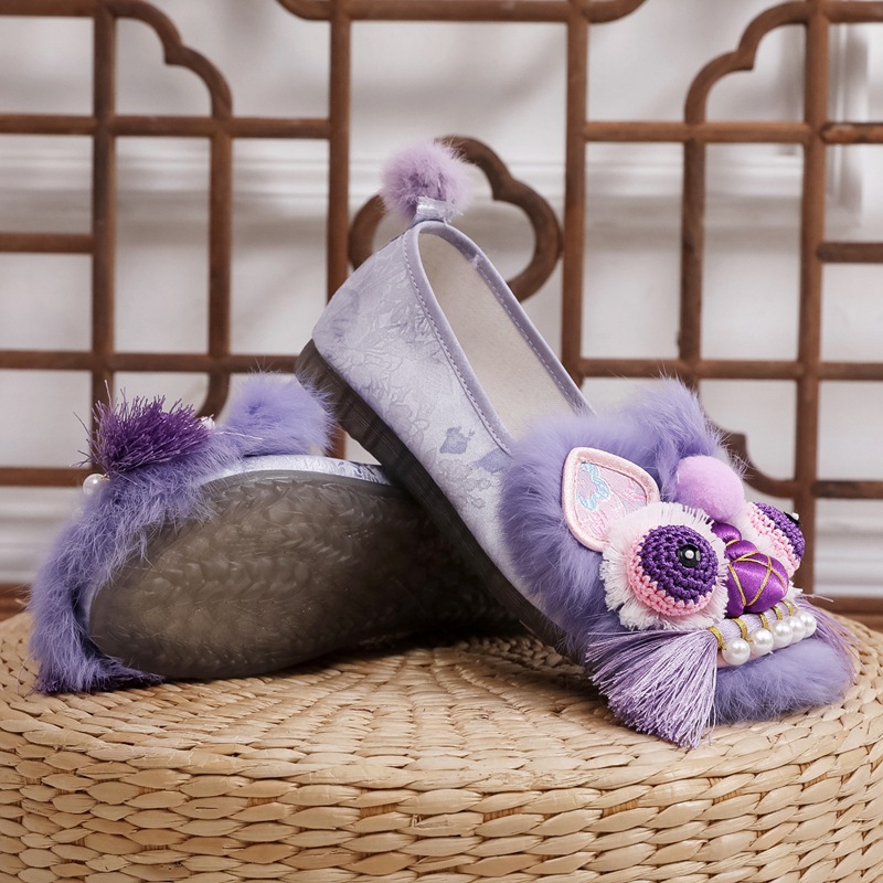 2024年新作 冬用 女の子 漢服靴 古風 刺繍靴 プリンセス パフォーマンス用 フラットシューズ 子供用 裏起毛綿靴