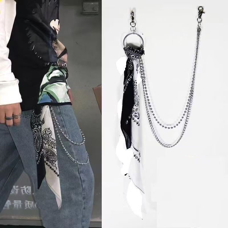 カシューナッツ柄の小さめスカーフヘアバンド、万能なヒップホップパンツチェーン、トレンディなストリートダンスアクセサリー、インダストリアルパンツチェーン、ウエストチェーン