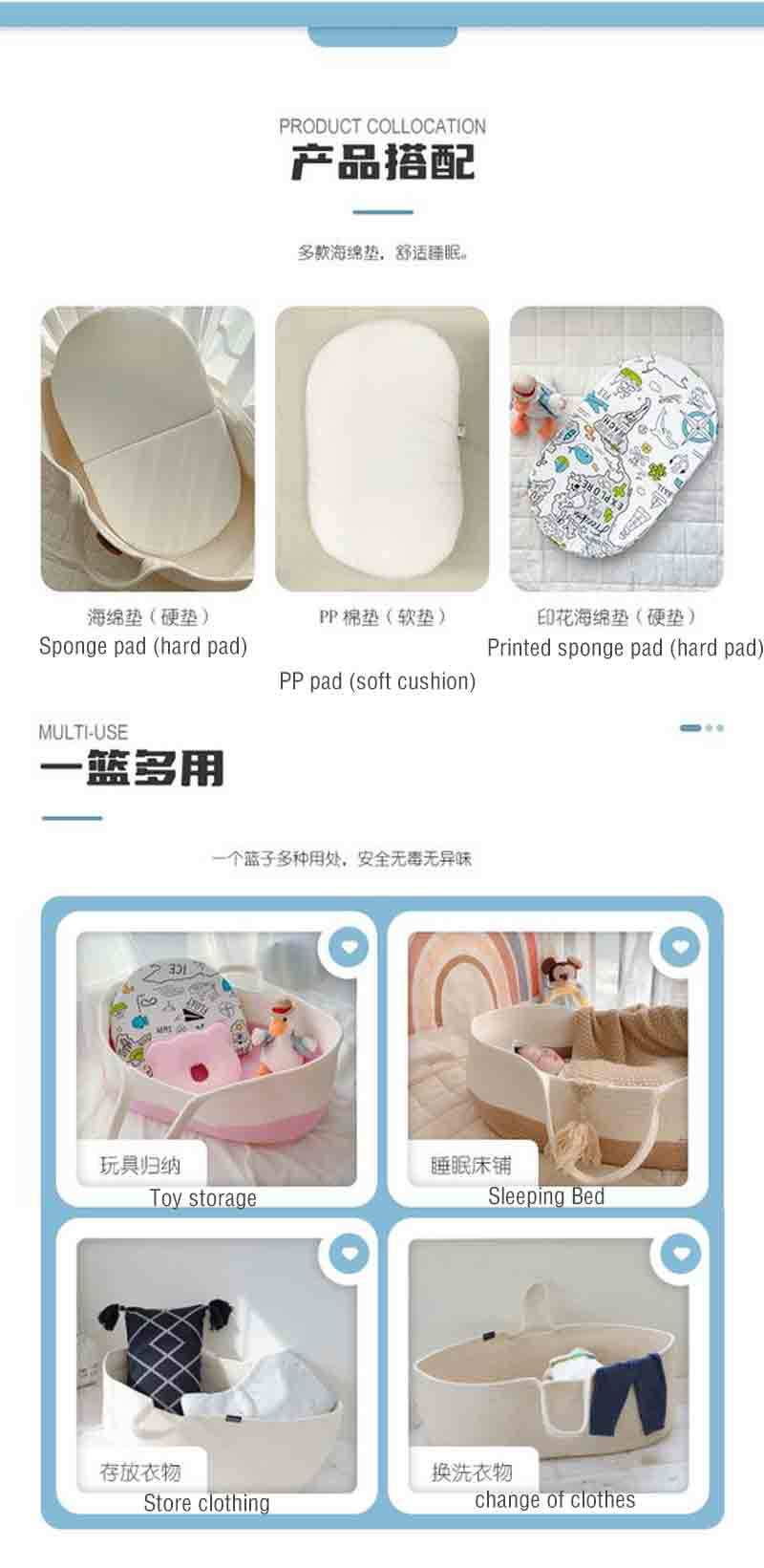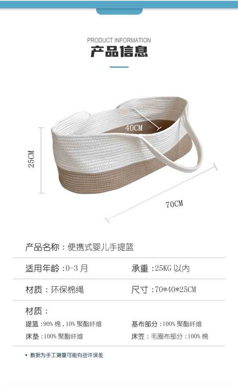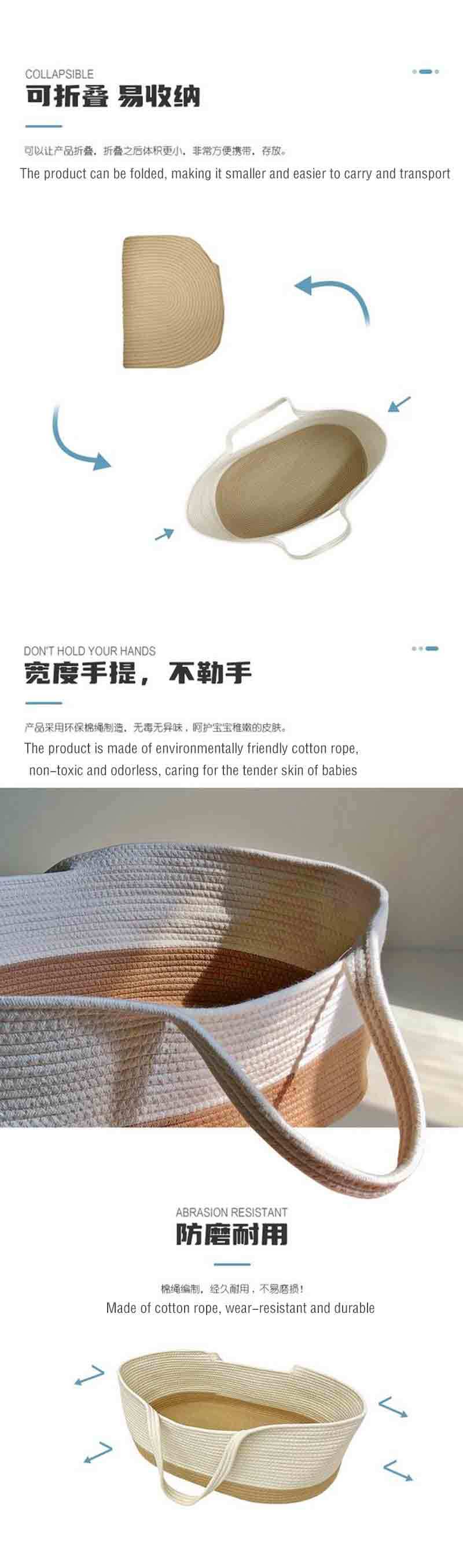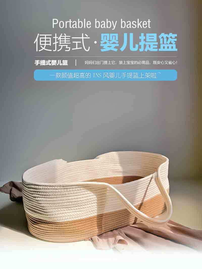 クロスボーダー手作りラインモーゼクレードルポータブルボックス綿ロープ織りベビーベッド布ストリップ織り新生児ポータブルバスケット