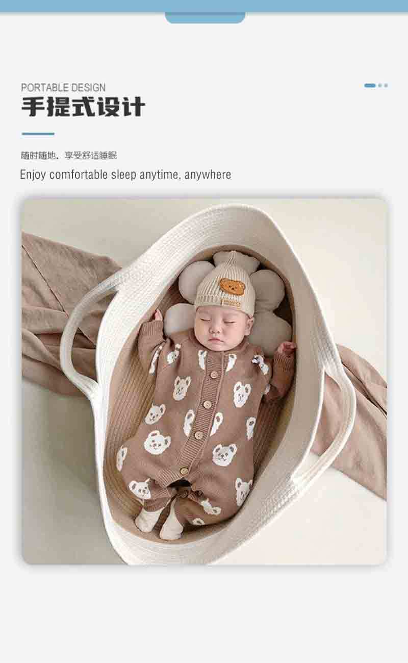 Ins綿紐ベビーベッド新生児手提げバスケット赤ちゃん揺りかご屋外寝かごポータブル家具撮影神器