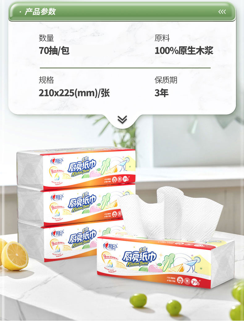 心相印キッチンティッシュ70吸油吸水キッチンペーパー吸い取り式料理専用ティッシュ