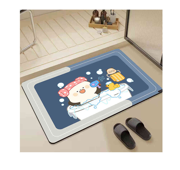 漫画アニメーション珪藻泥フロアマット、滑り止め、耐摩耗性、汚れ防止、お手入れが簡単なフットマット、家庭用吸水性と速乾性のバスルームフロアマット