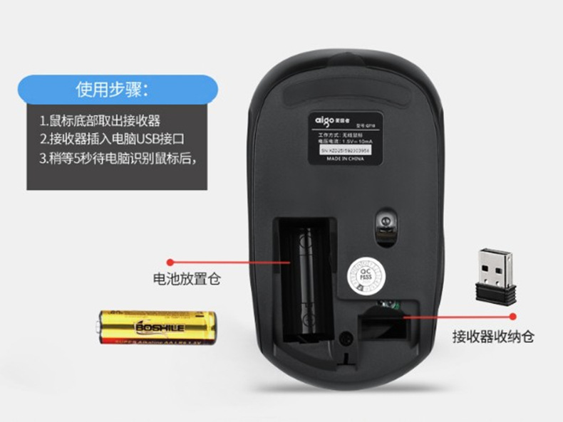 鼠标的接收器在 底部打电电池盖就看到一个小长方形的,拿出来插入电脑就可以了