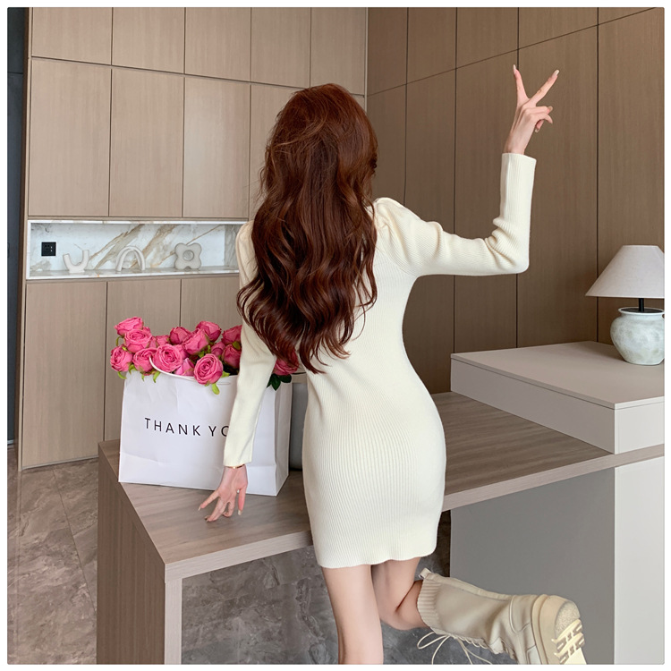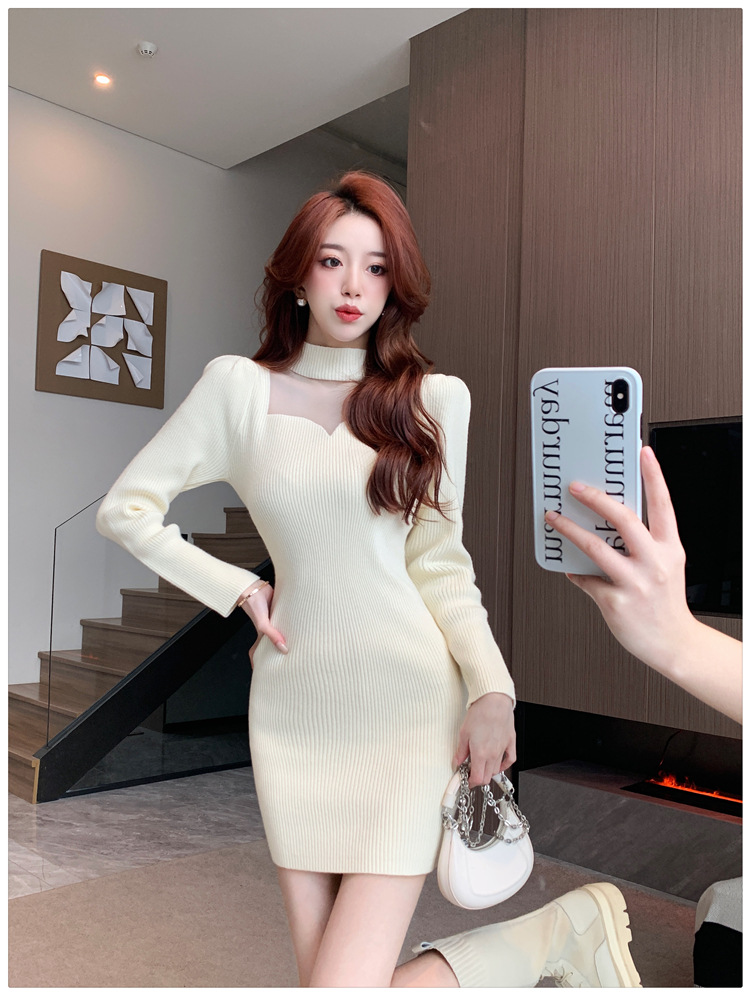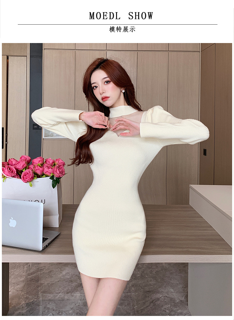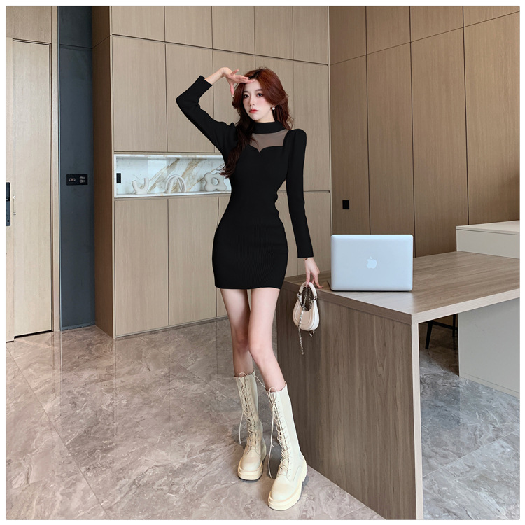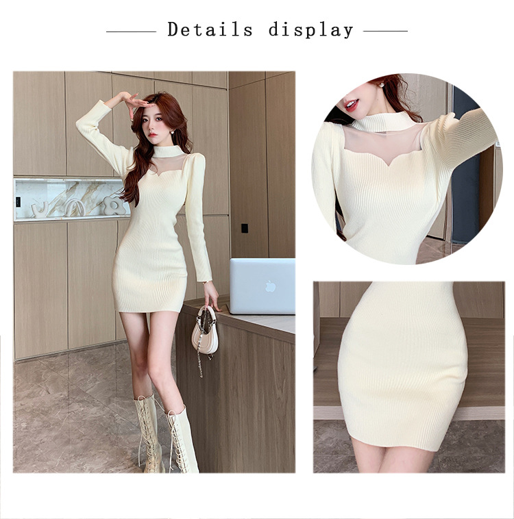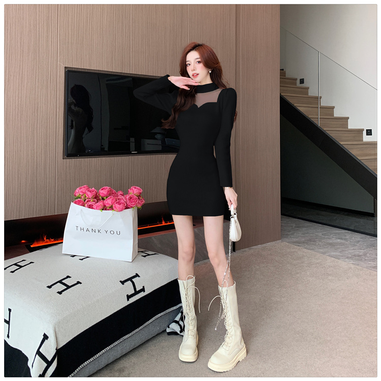 フランスの半高襟のニットのワンピースの女性2025春の新型の中にお尻のスカートの小さい背を包んでスカートを打ちます。