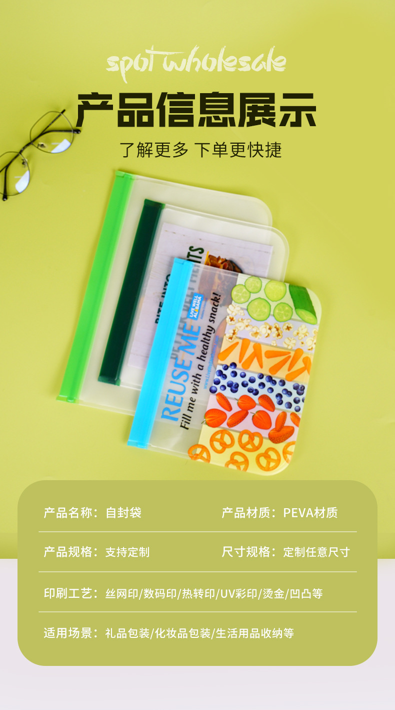 現物peva冷蔵庫食品収納保存袋フロストpeva防水袋peva自封ポケット