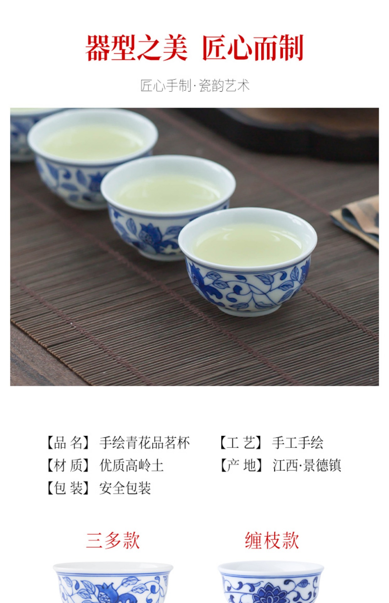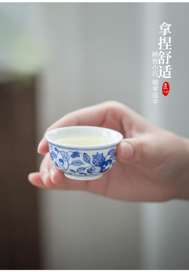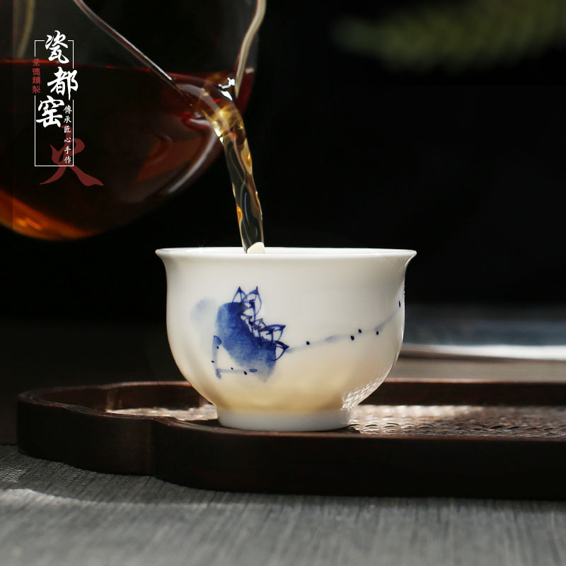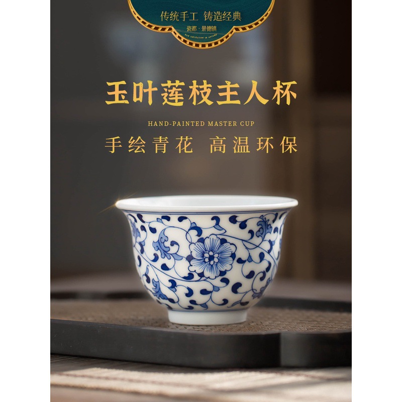 磁器都窯火景徳鎮茶具陶磁器手描き茶杯主人杯単杯青花磁器工夫茶具品茗杯