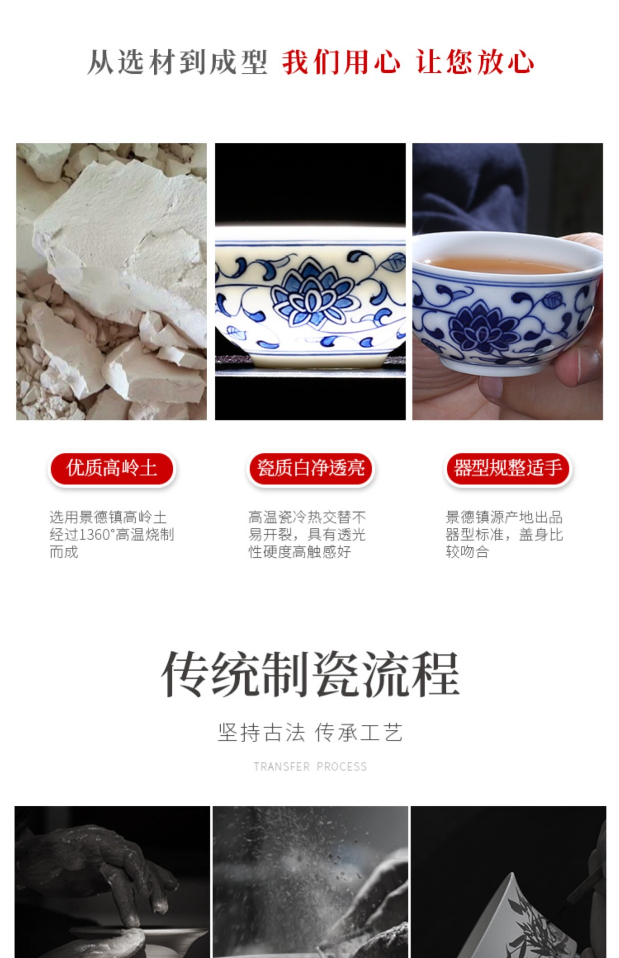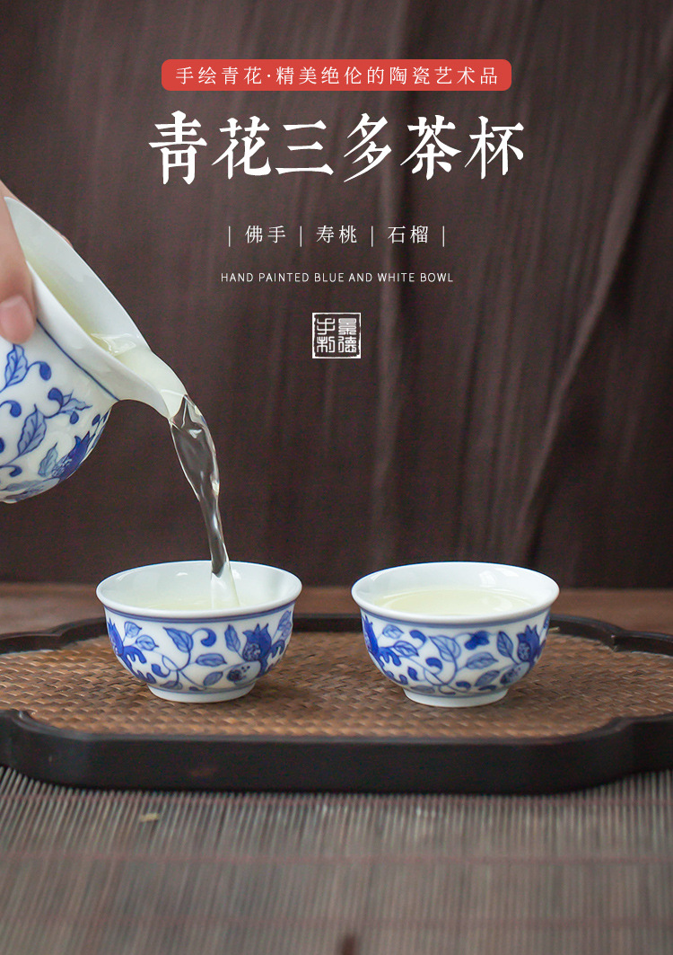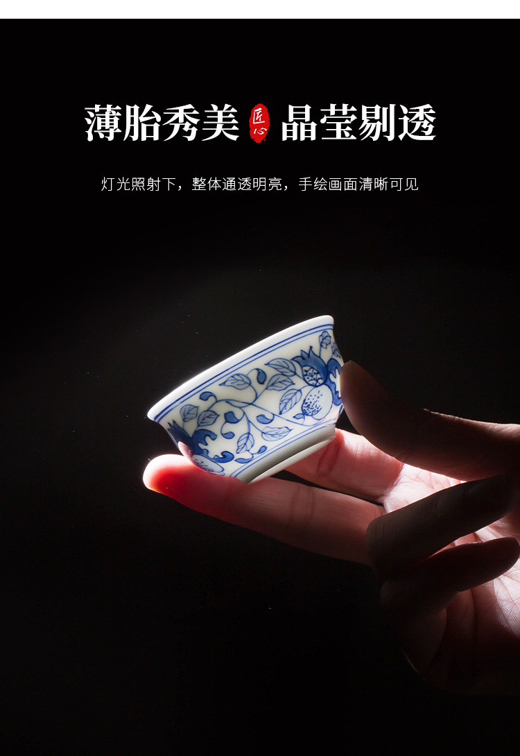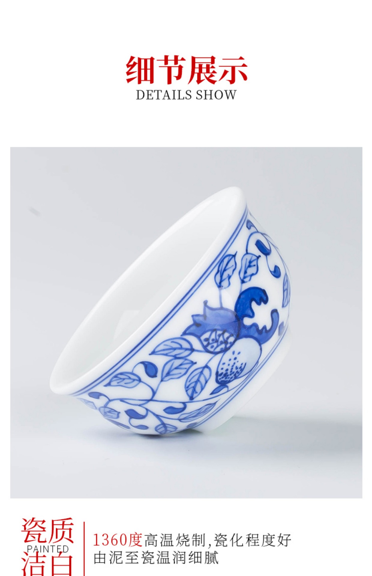 磁器都窯火景徳鎮茶具陶磁器手描き茶杯主人杯単杯青花磁器工夫茶具品茗杯
