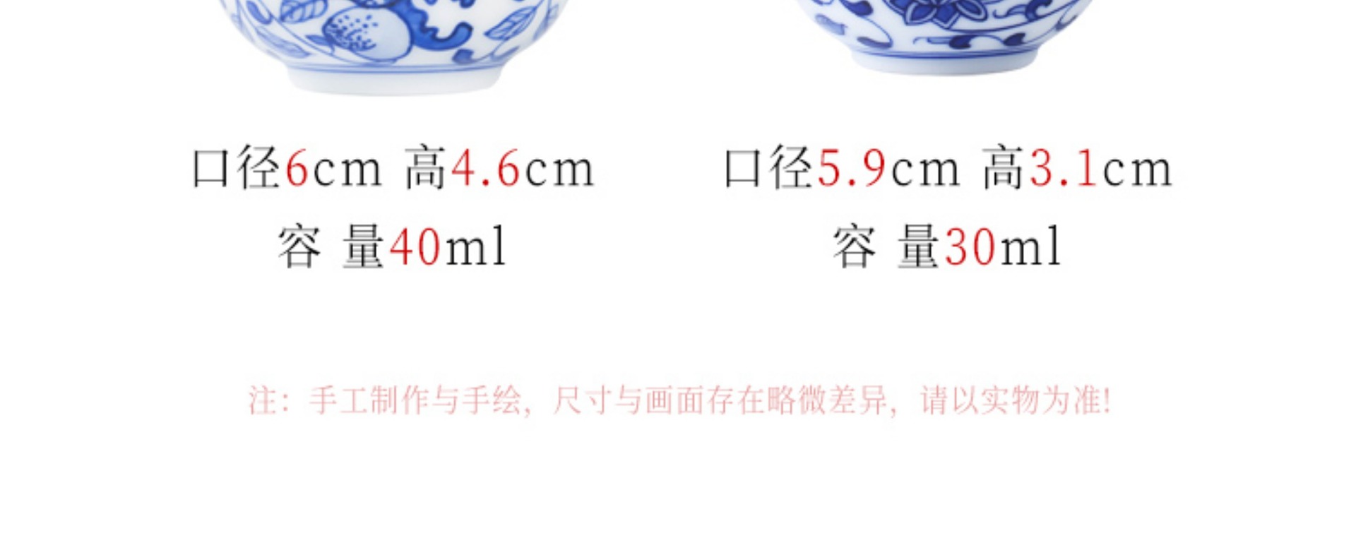 磁器都窯火景徳鎮茶杯手描き工夫茶杯品茗杯陶磁器家庭用茶具主人杯単杯