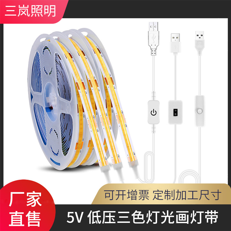 5v led低圧ライトバー501ボタンスイッチ三色変光帯バックゴム額縁ライトバーライト画灯帯usb
