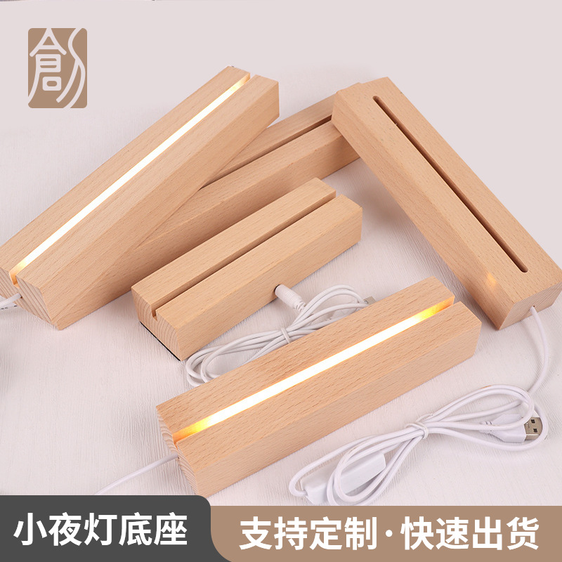 実木小夜灯台座LED発光台座長方形灯台diyアクリル木製ケヤキ発光台座