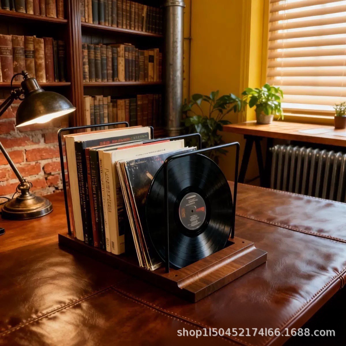 跨境黑胶唱片收纳架咖啡厅氛围CD唱片架桌面装饰唱片展示架食谱架
