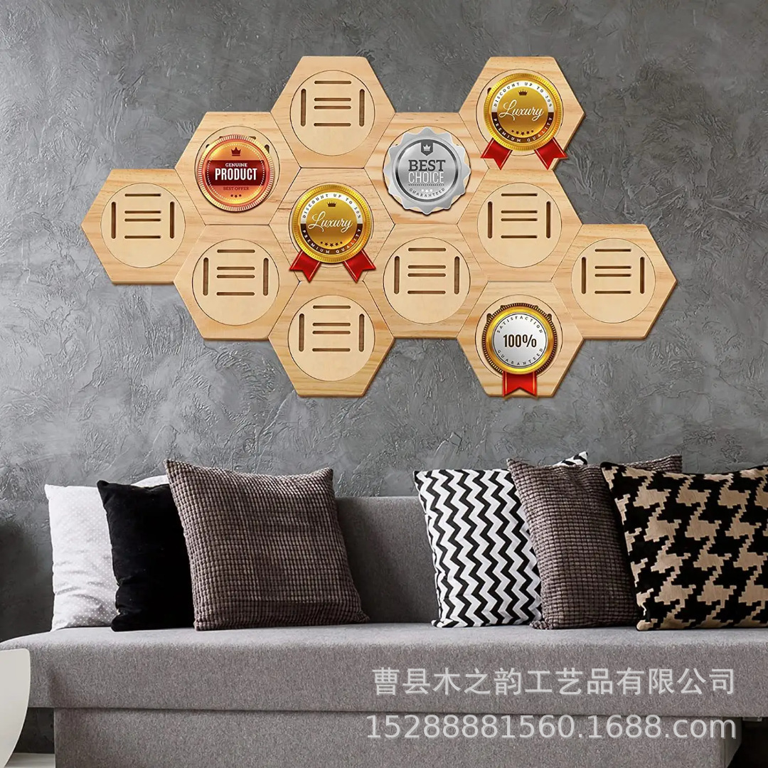 クロスボーダー木製ハニカムメダルラック壁掛け壁受賞金メダルディスプレイラック六角形メダルラック