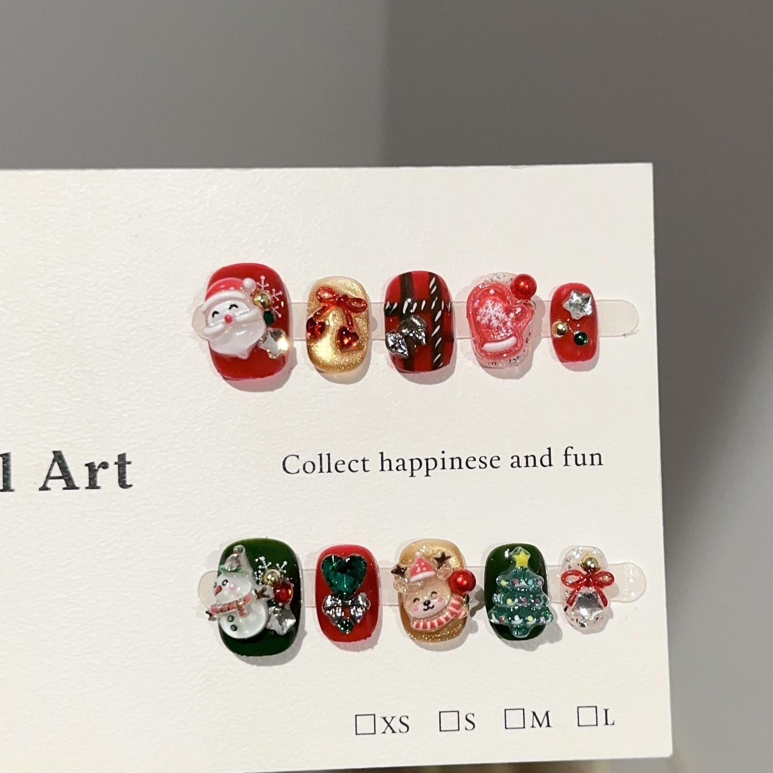 纯手工穿戴甲片高级感圣诞老人红绿美甲片雪人麋鹿欧美假指甲贴片