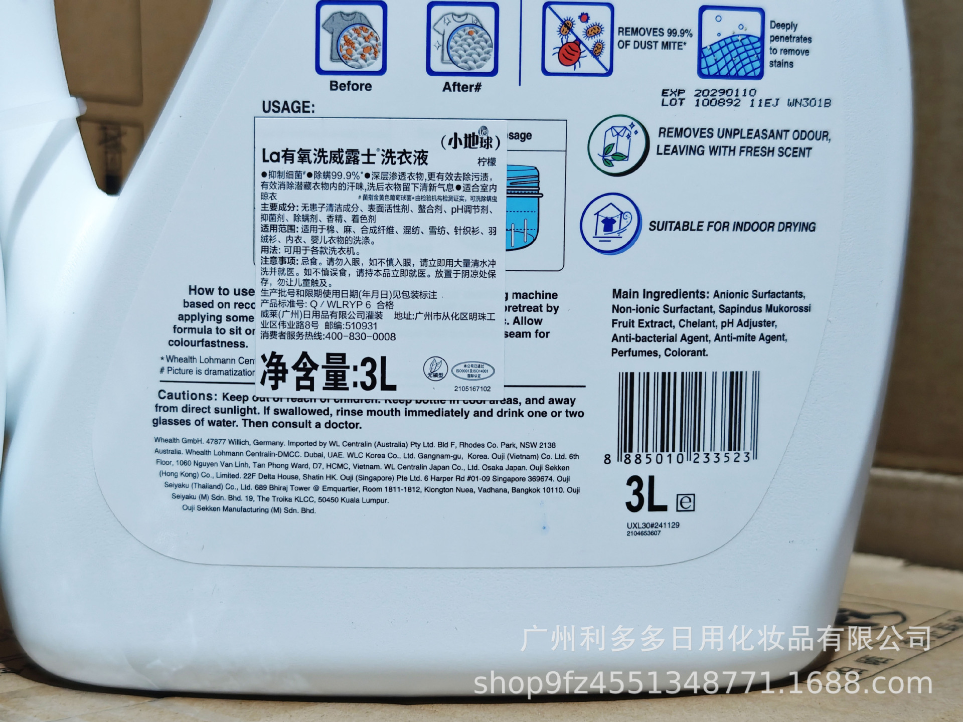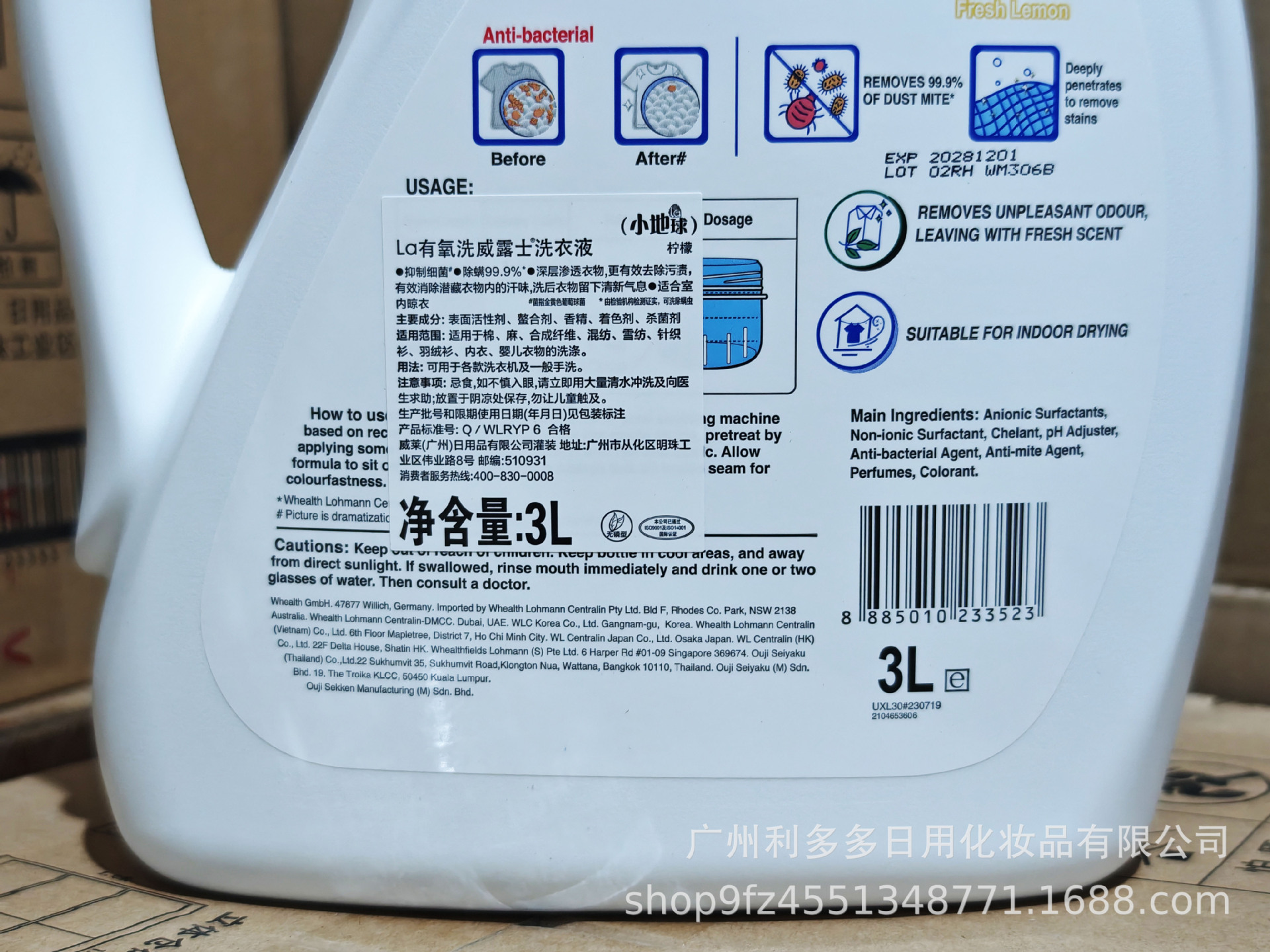 La有酸素洗浄洗濯液3L松木レモン除ダニ除菌クリーン除味大瓶家庭用持続的に香りを残す