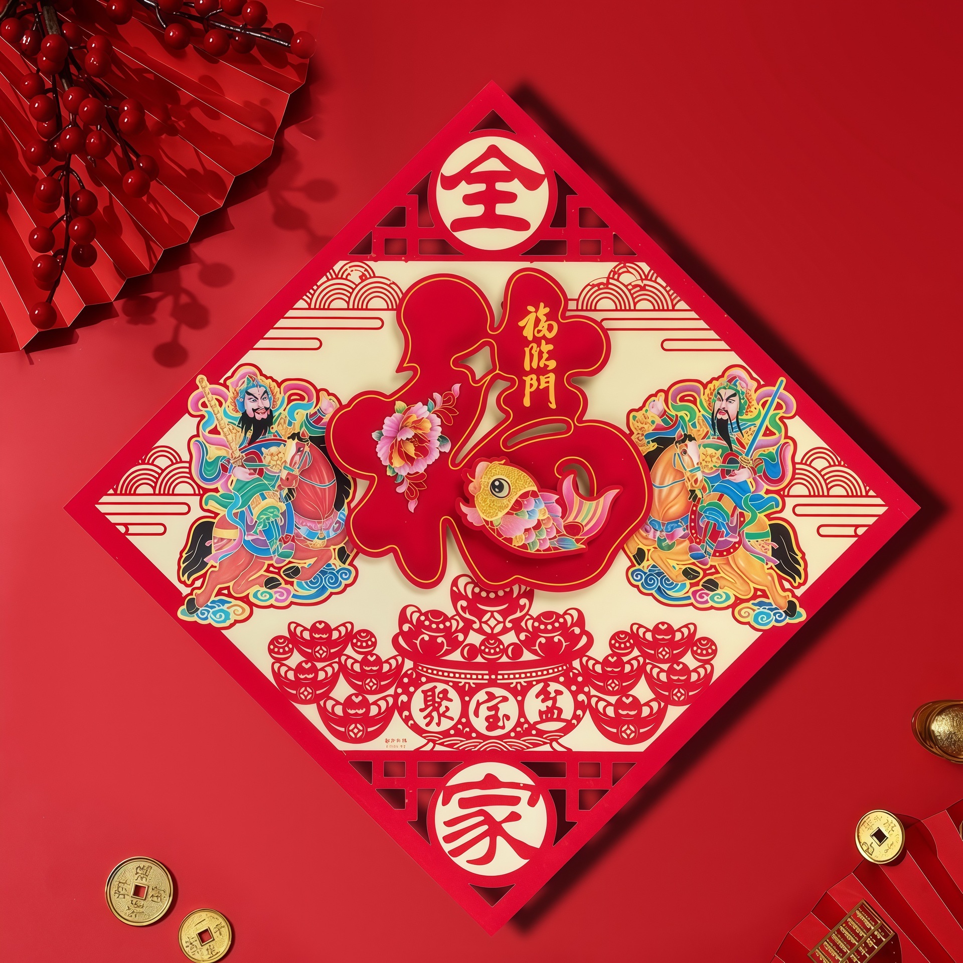2026年福文字ドアステッカー、馬年馬年門神ステッカー、大型植栽吊り下げ飾り、ベルベット春節ペアステッカー、立体3D、卸売