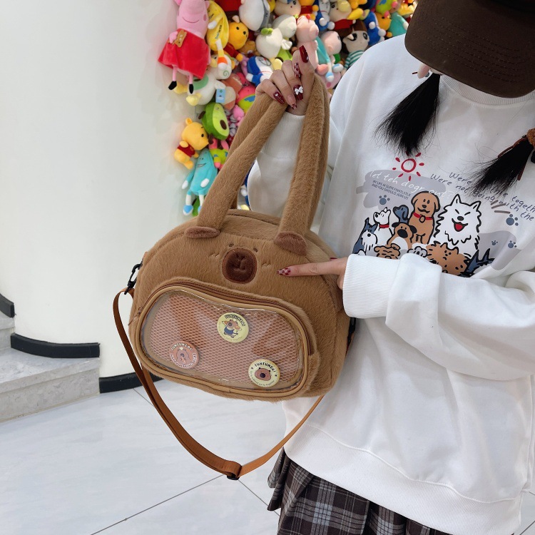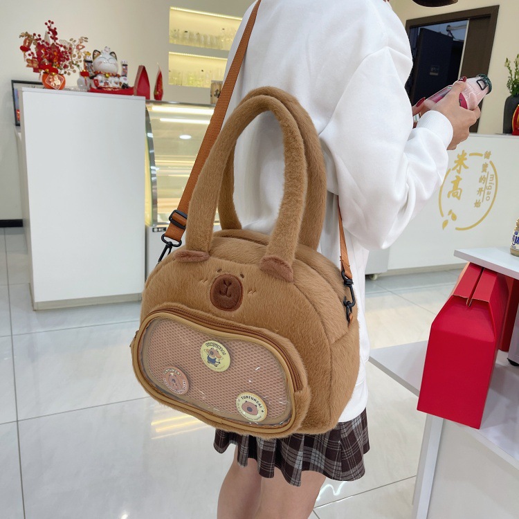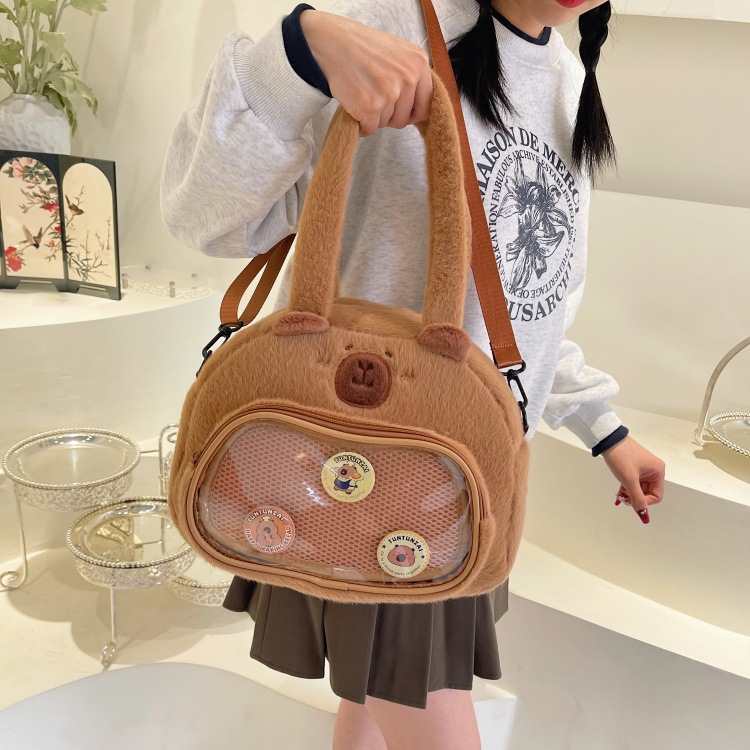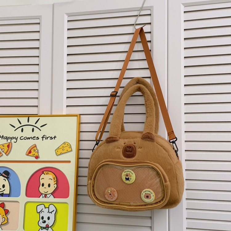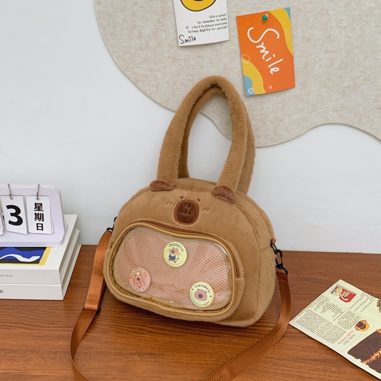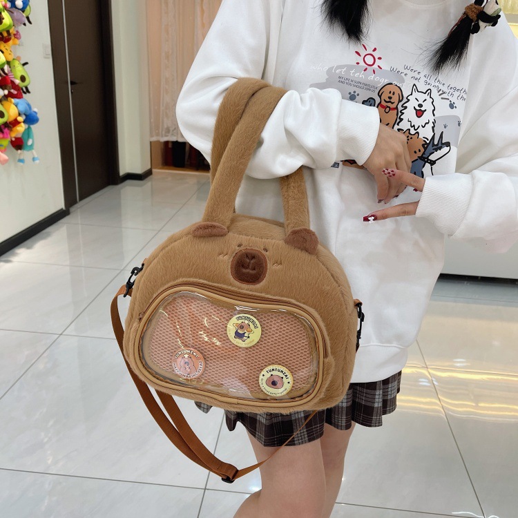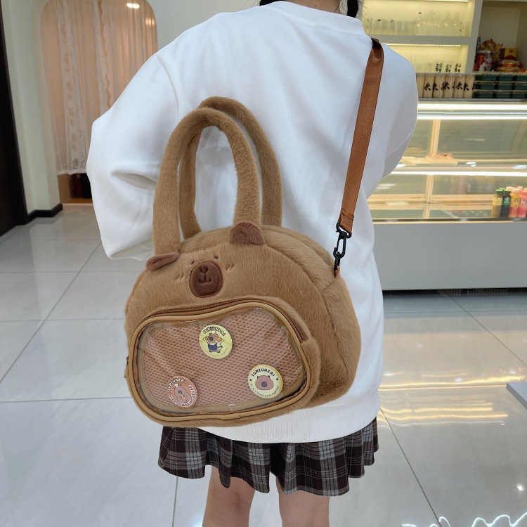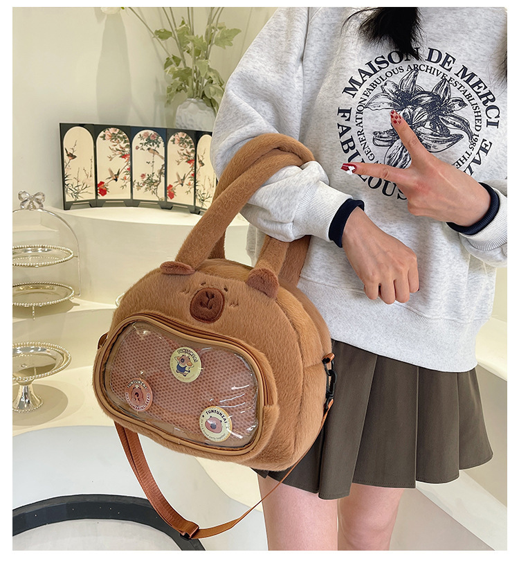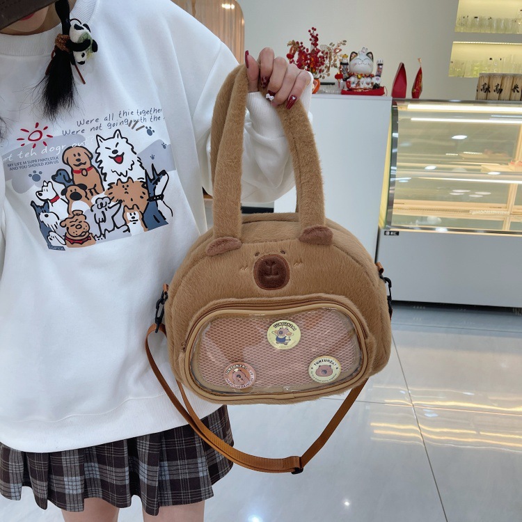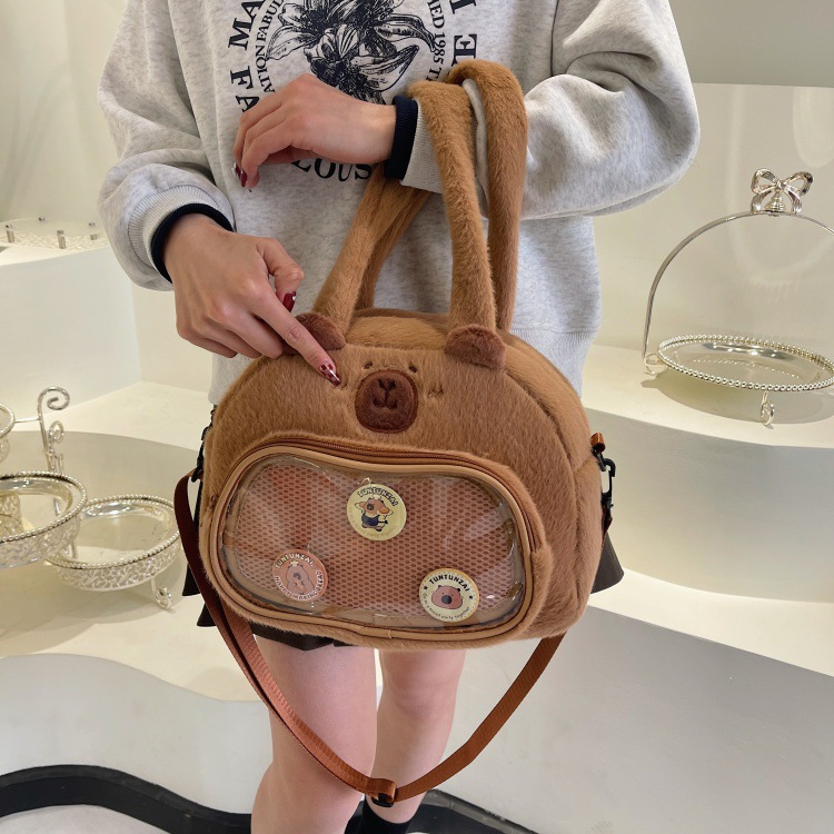 かわいいカピバラのぬいぐるみショルダーバッグ、漫画風のかわいいカピバラの巾着バッグ