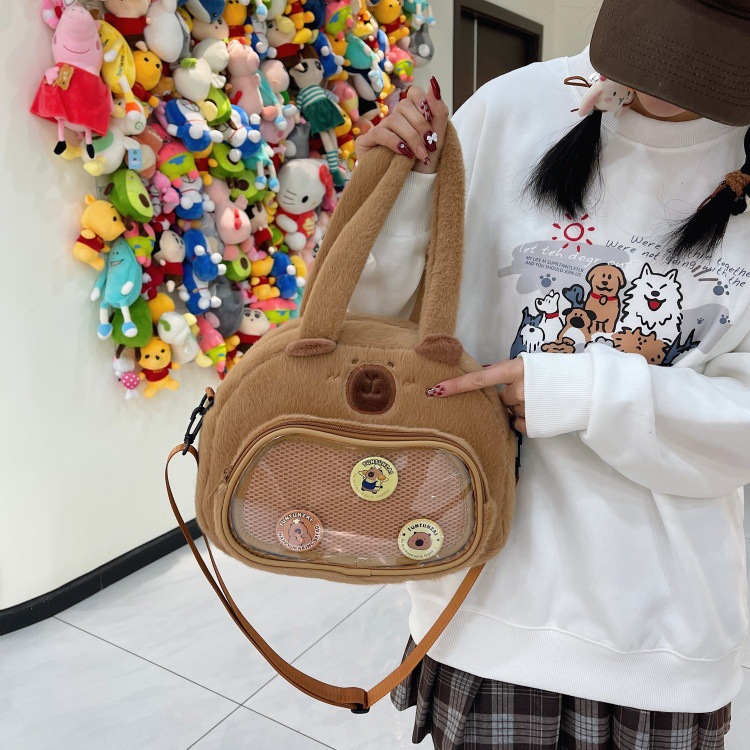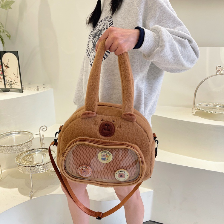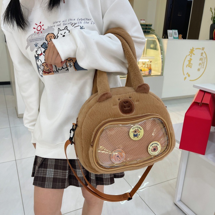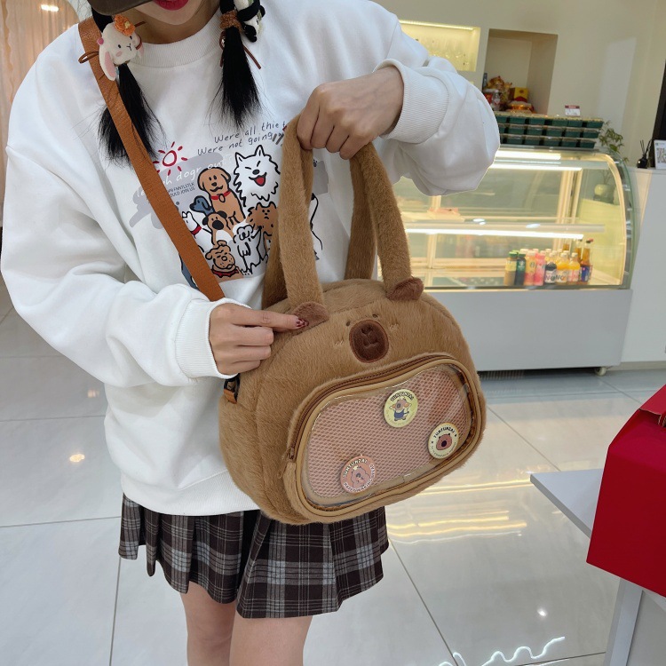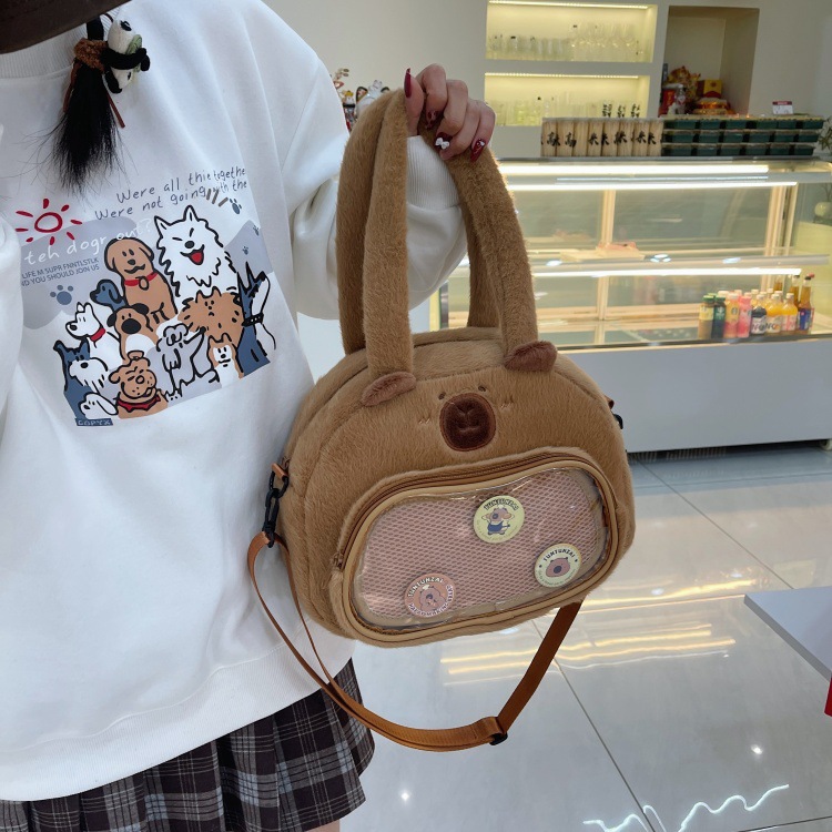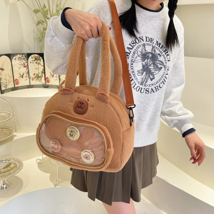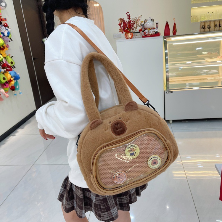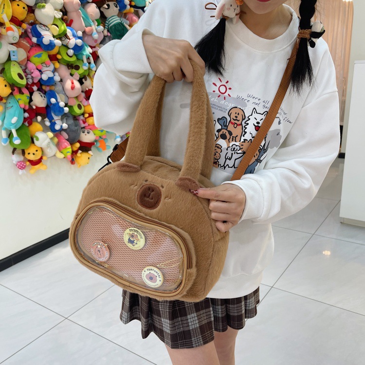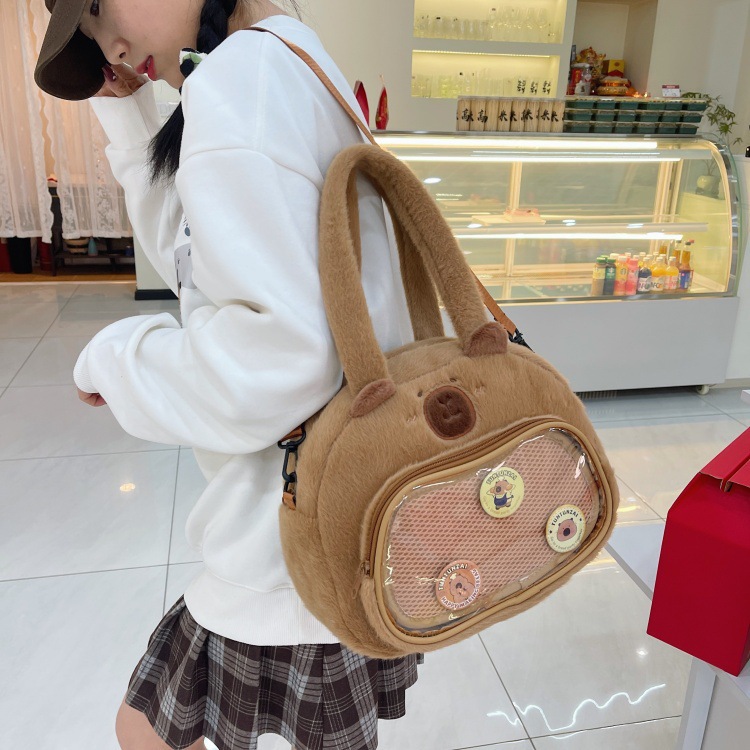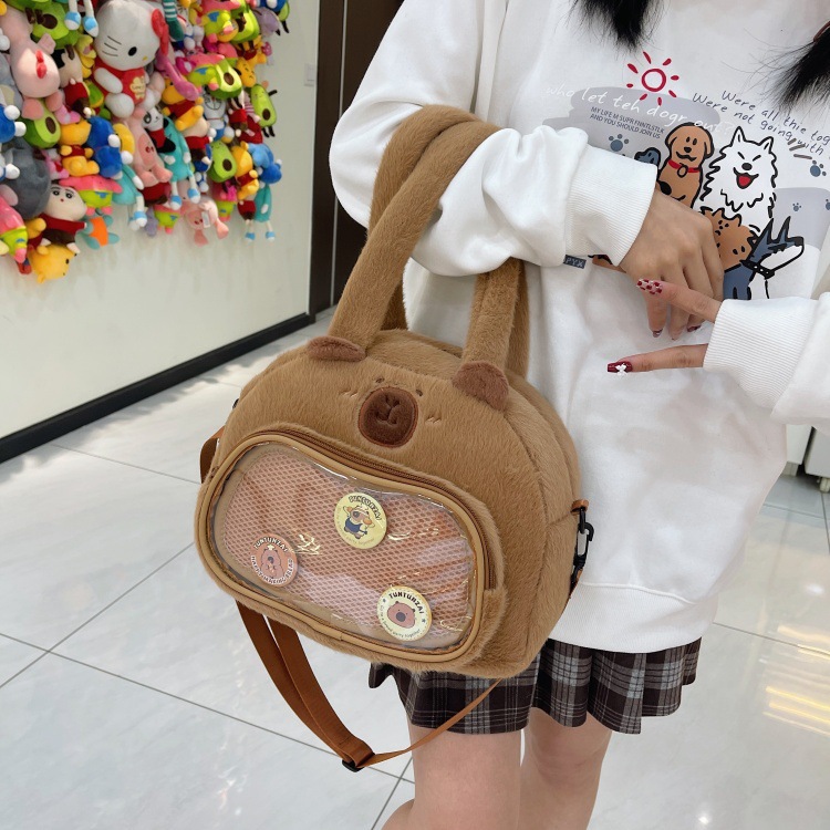 かわいいカピバラのぬいぐるみショルダーバッグ、漫画風のかわいいカピバラの巾着バッグ