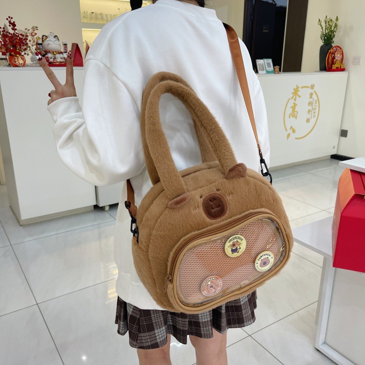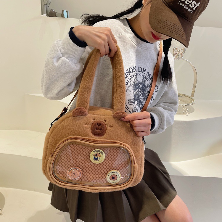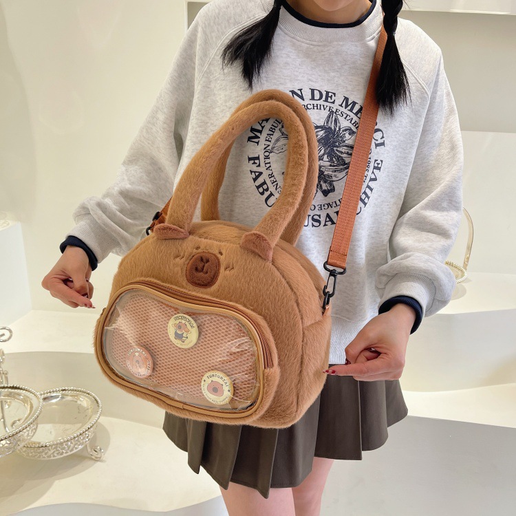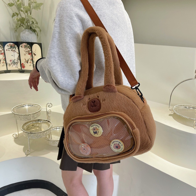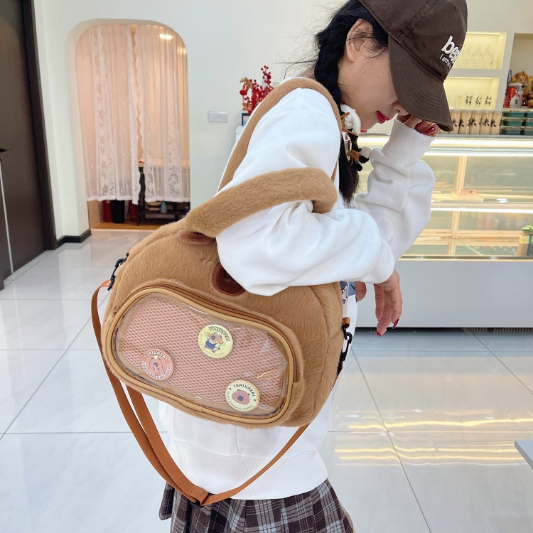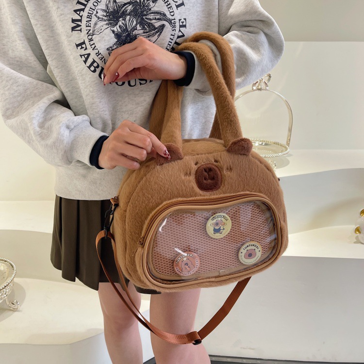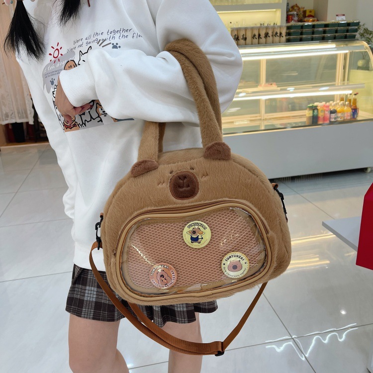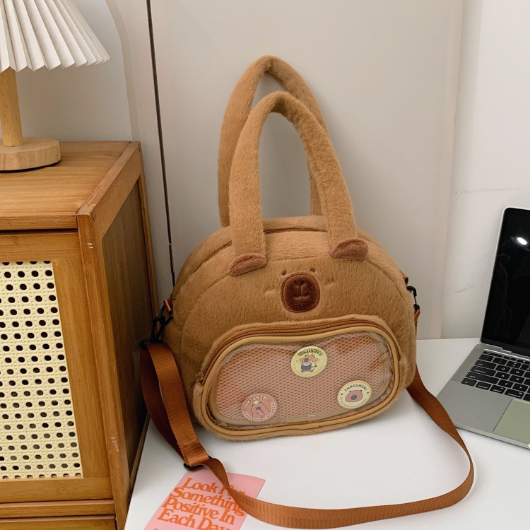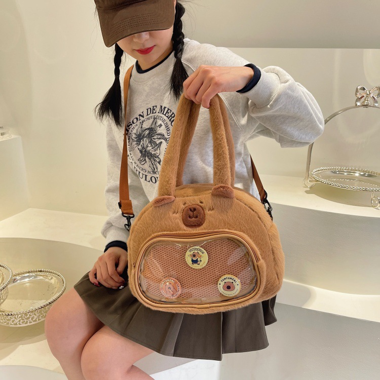 かわいいカピバラのぬいぐるみショルダーバッグ、漫画風のかわいいカピバラの巾着バッグ