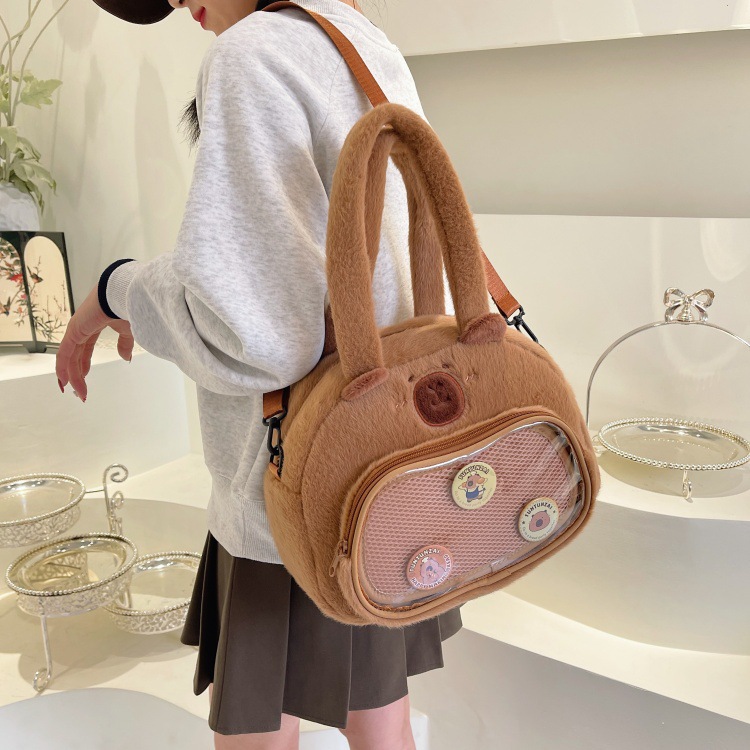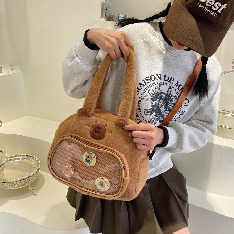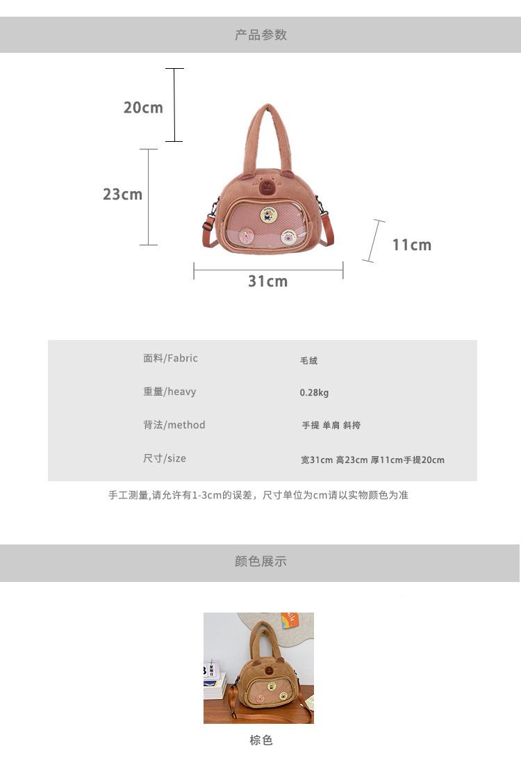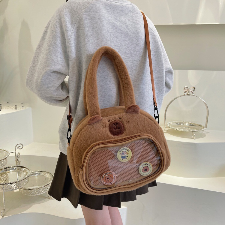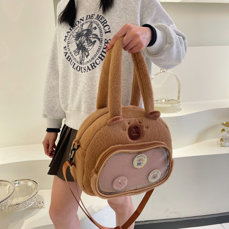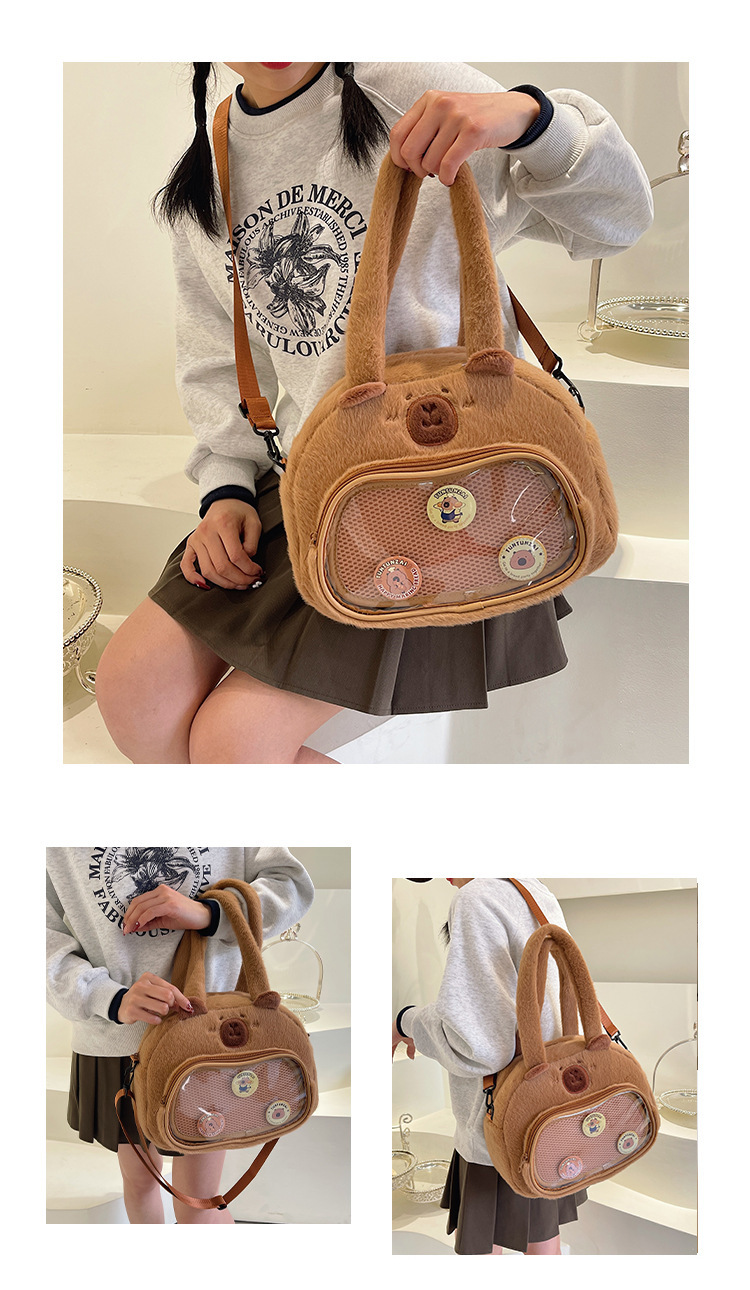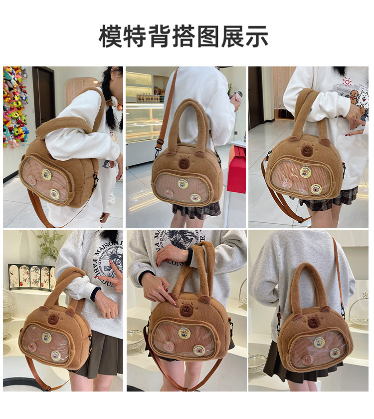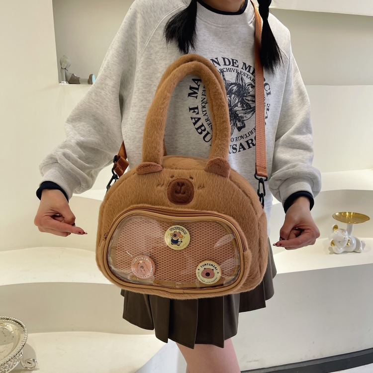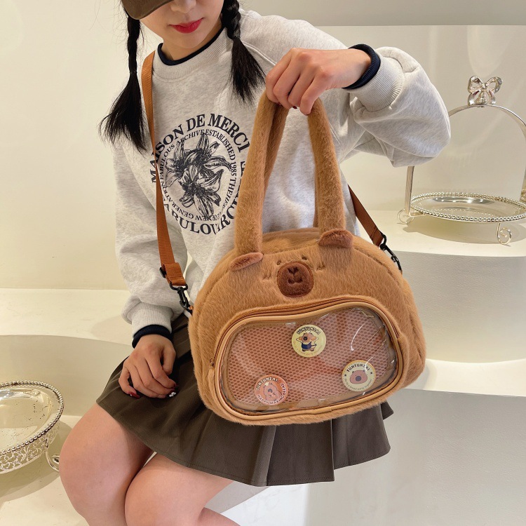 かわいいカピバラのぬいぐるみショルダーバッグ、漫画風のかわいいカピバラの巾着バッグ
