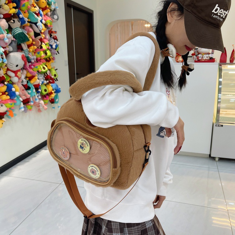 おしゃれな漫画風ぬいぐるみミニバッグ、ファッショナブルな新作ポータブル旅行用ショルダーバッグ、キュートな脇の下斜め掛けバッグ(女性用)