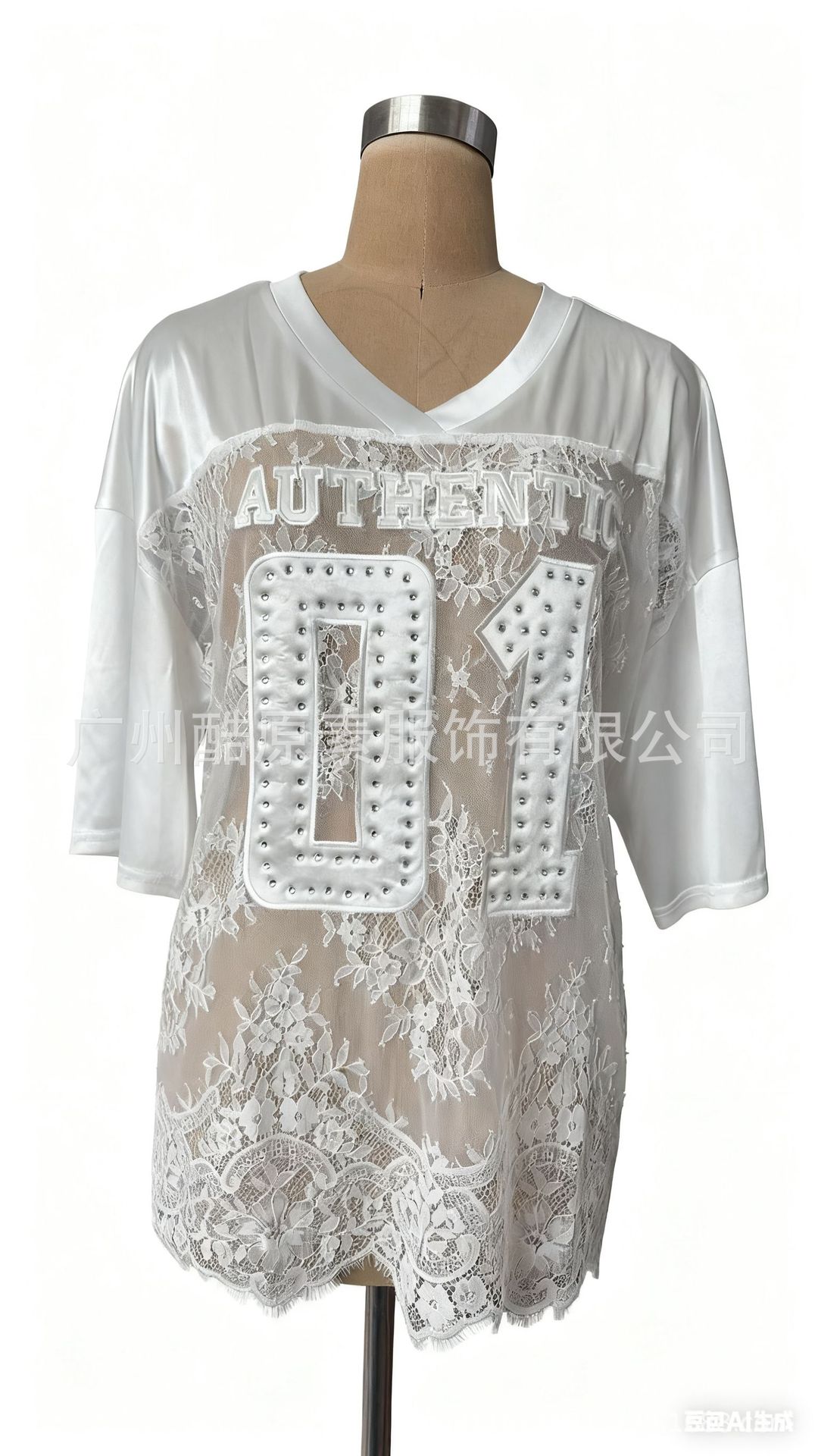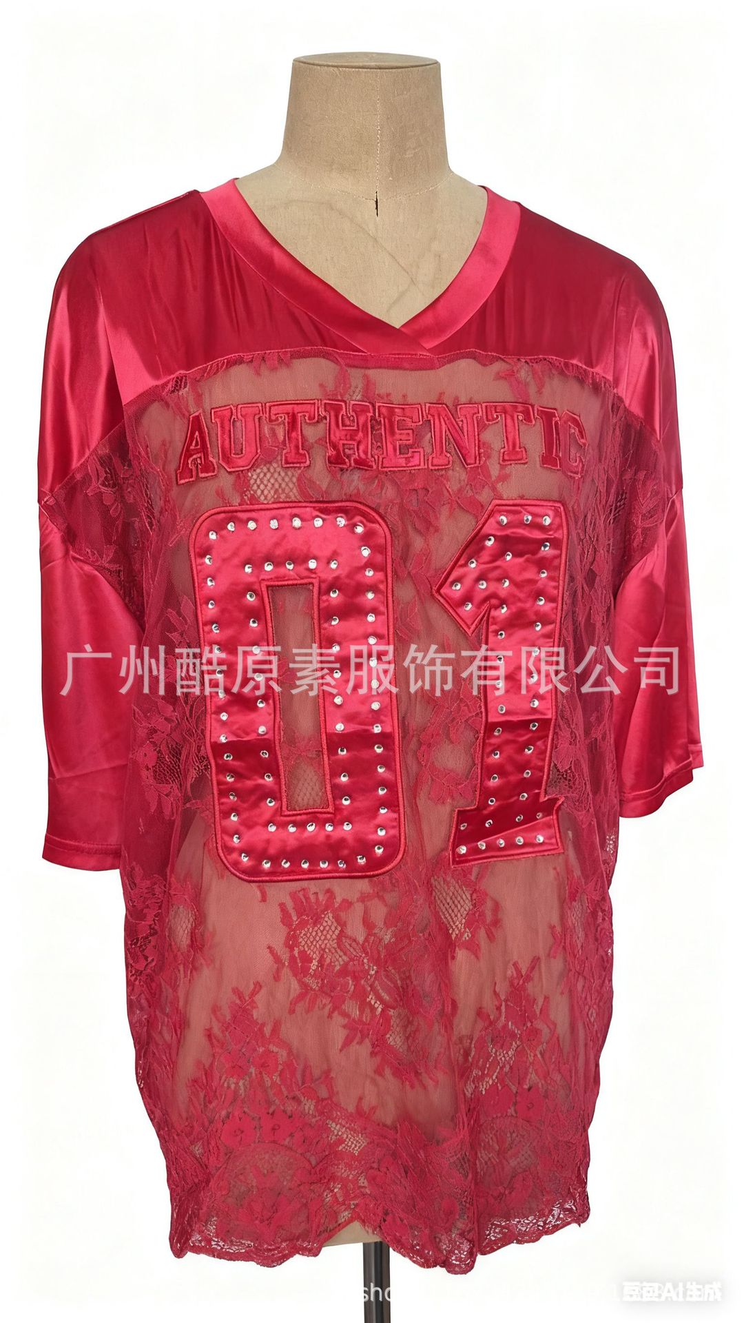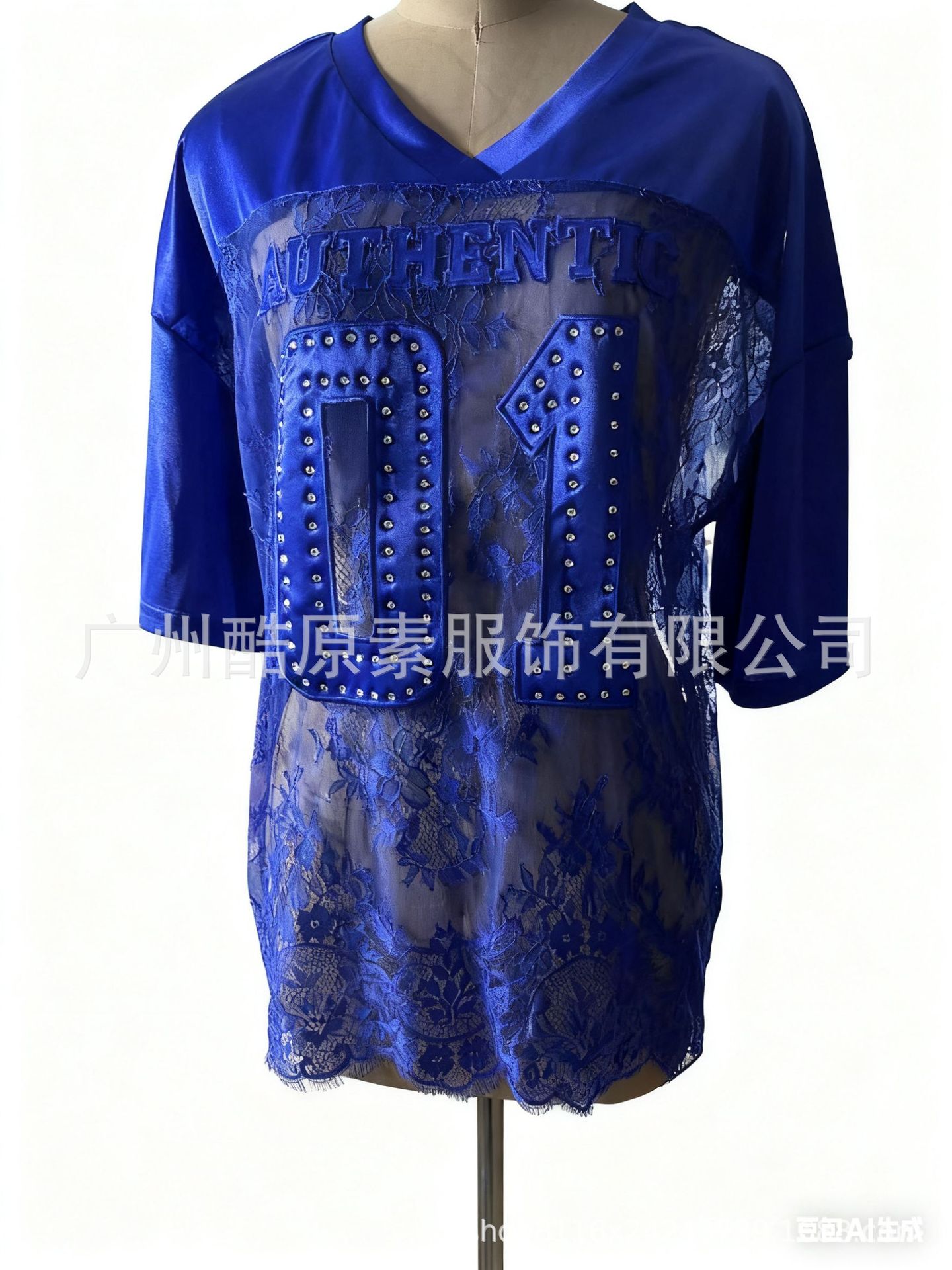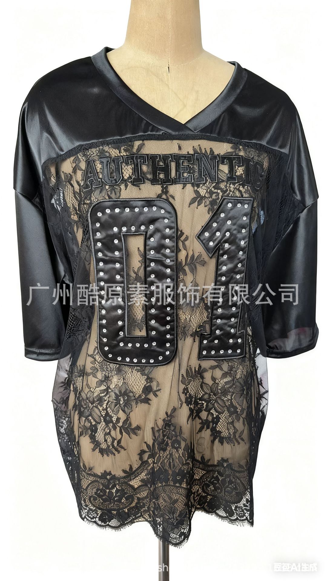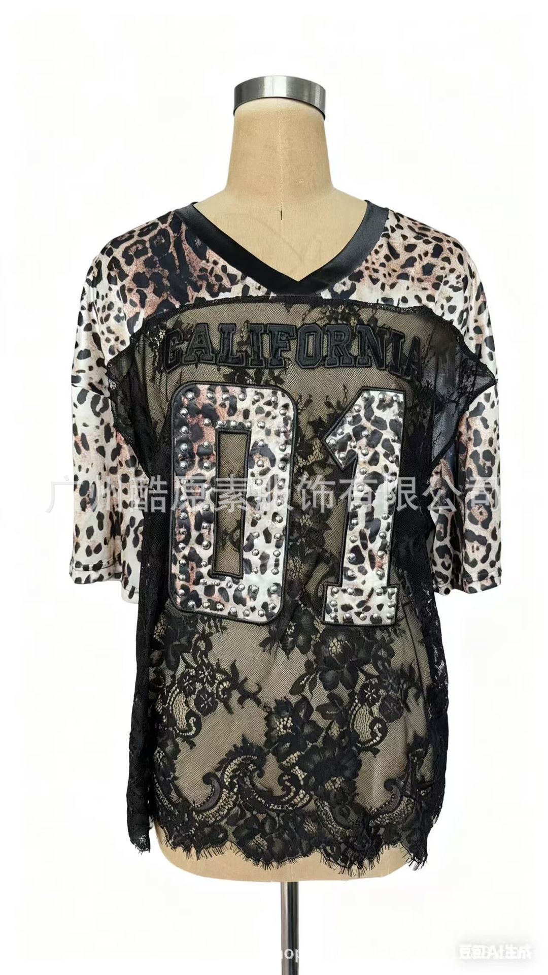 2025新型クロスボーダー欧米プリントゆるいカジュアル街頭透視セクシーレースtシャツ半袖上着