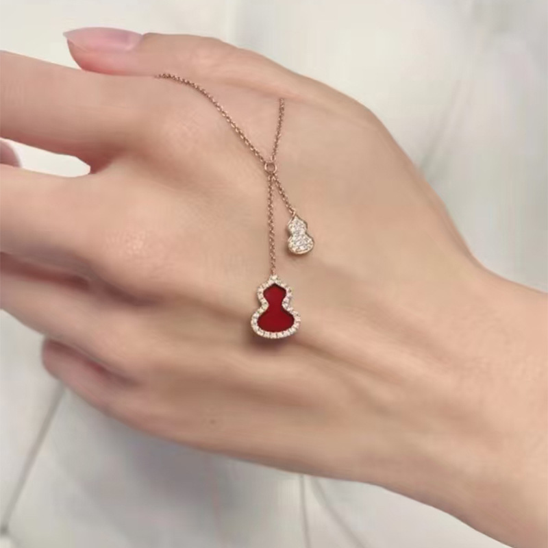 女性用キリンひょうたんダイヤモンドネックレスマスコットレッドアゲートローズゴールドメッキ18k鎖骨チェーンハイバージョンペンダントネックアクセサリー