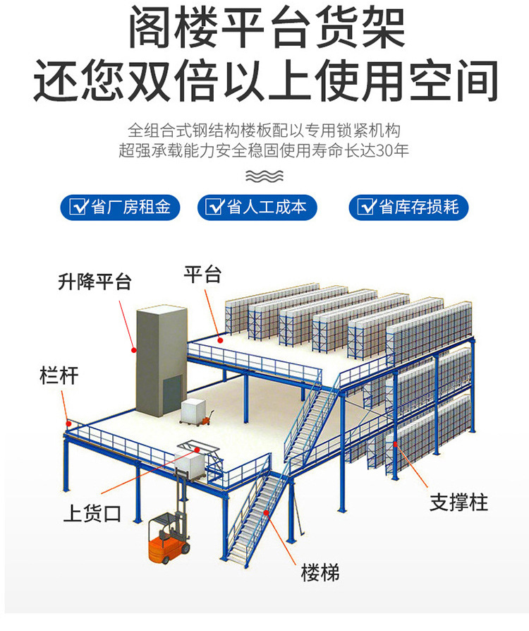 规格属性 定制阁楼式货架*阁楼货架免费上门设计*次重量*定制尺寸*4层-10层
