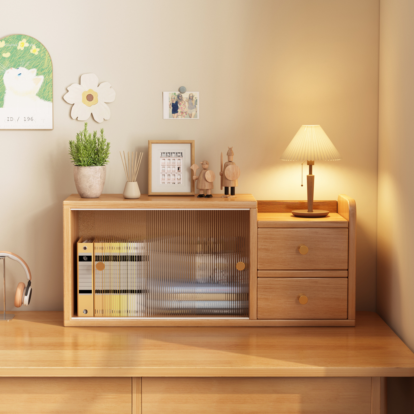 书架桌面带柜门置物架办公桌小型文件收纳整理架简易书桌分层架子