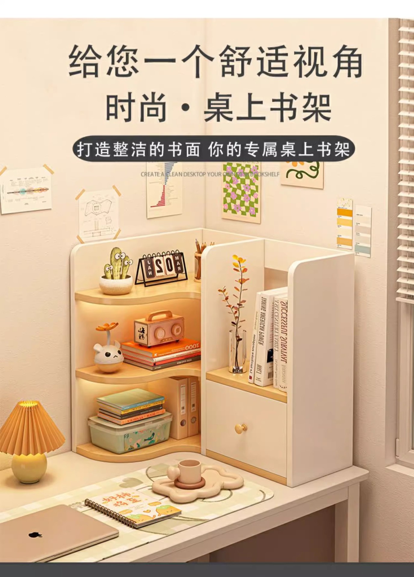 桌面置物架桌上转角书架办公室工位储物架子学生宿舍书桌收纳书柜