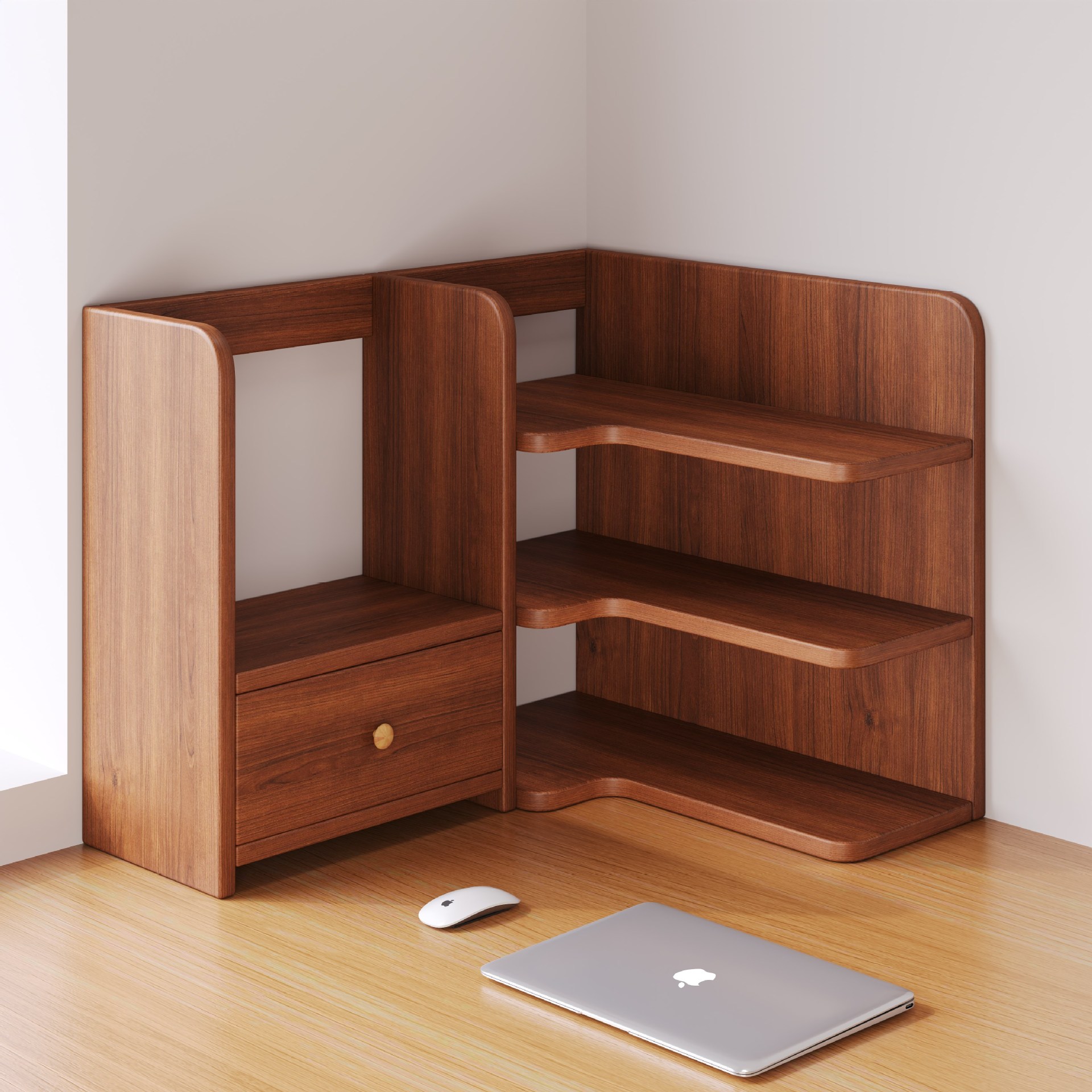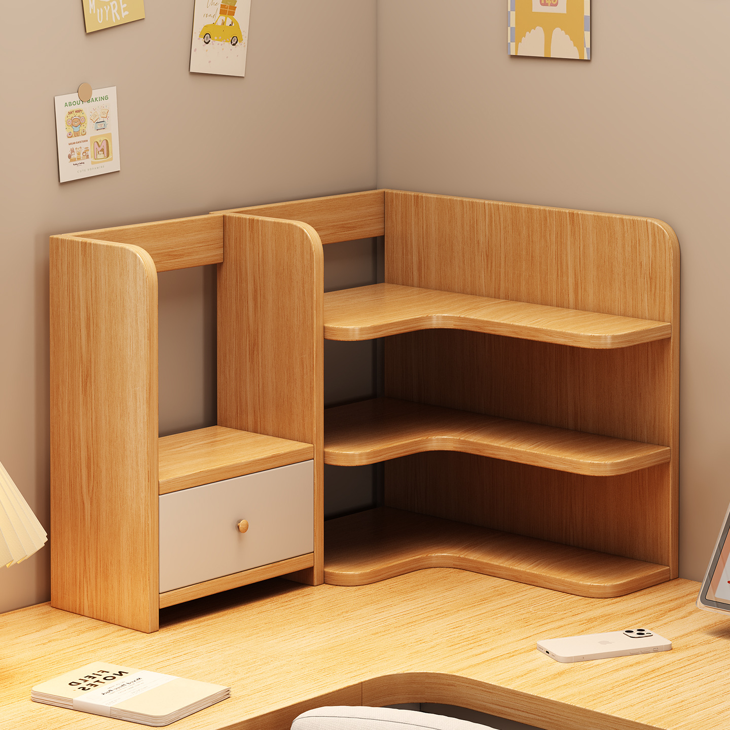 实木书架桌面转角置物架办公桌桌上收纳架家用书桌拐角储物架书柜