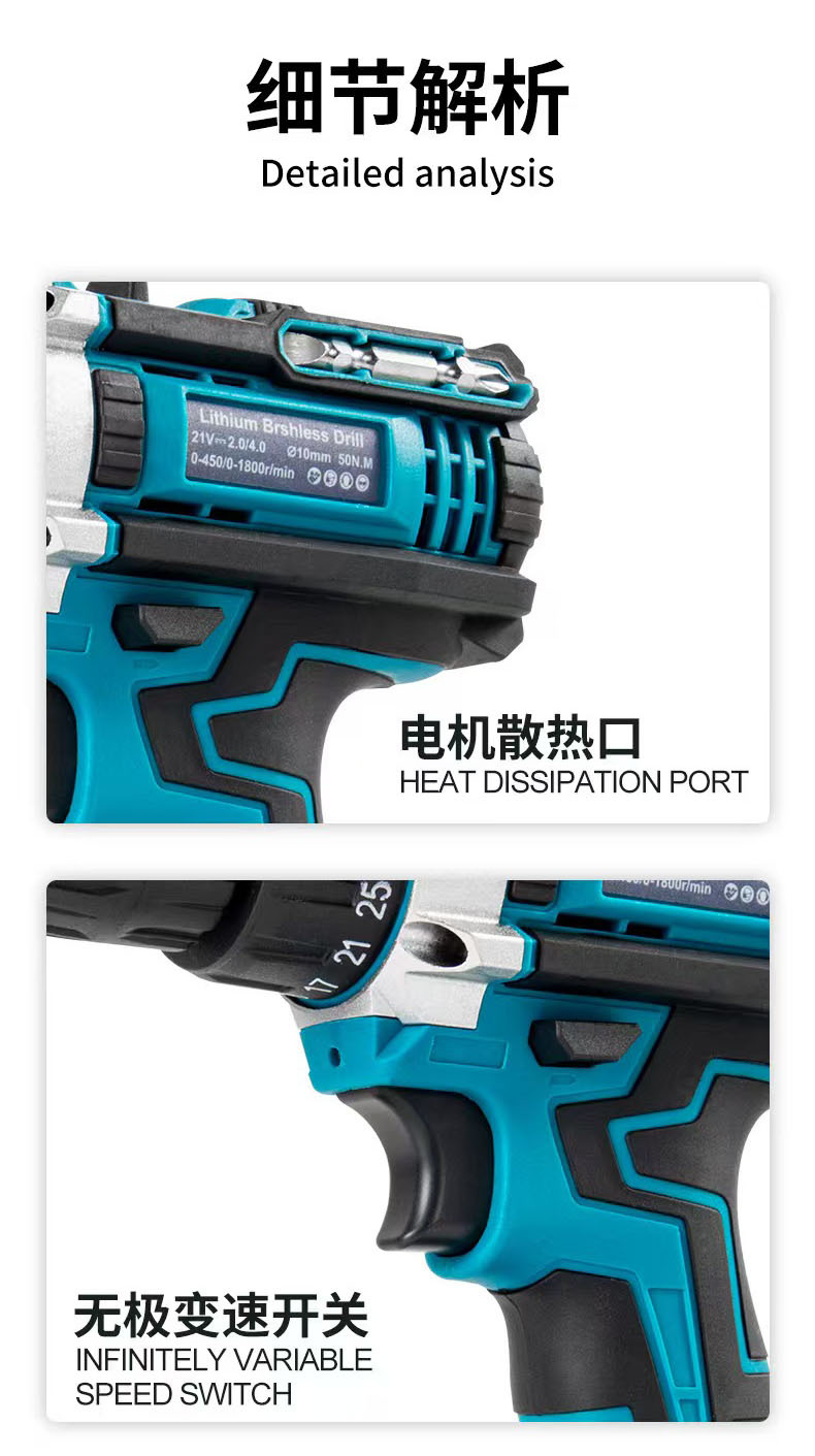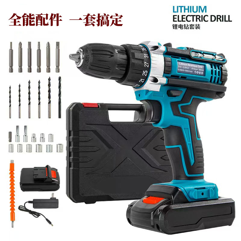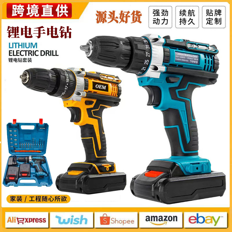 跨境热销手电钻多功能锂电钻电动工具21V家电动螺丝刀套装手枪钻