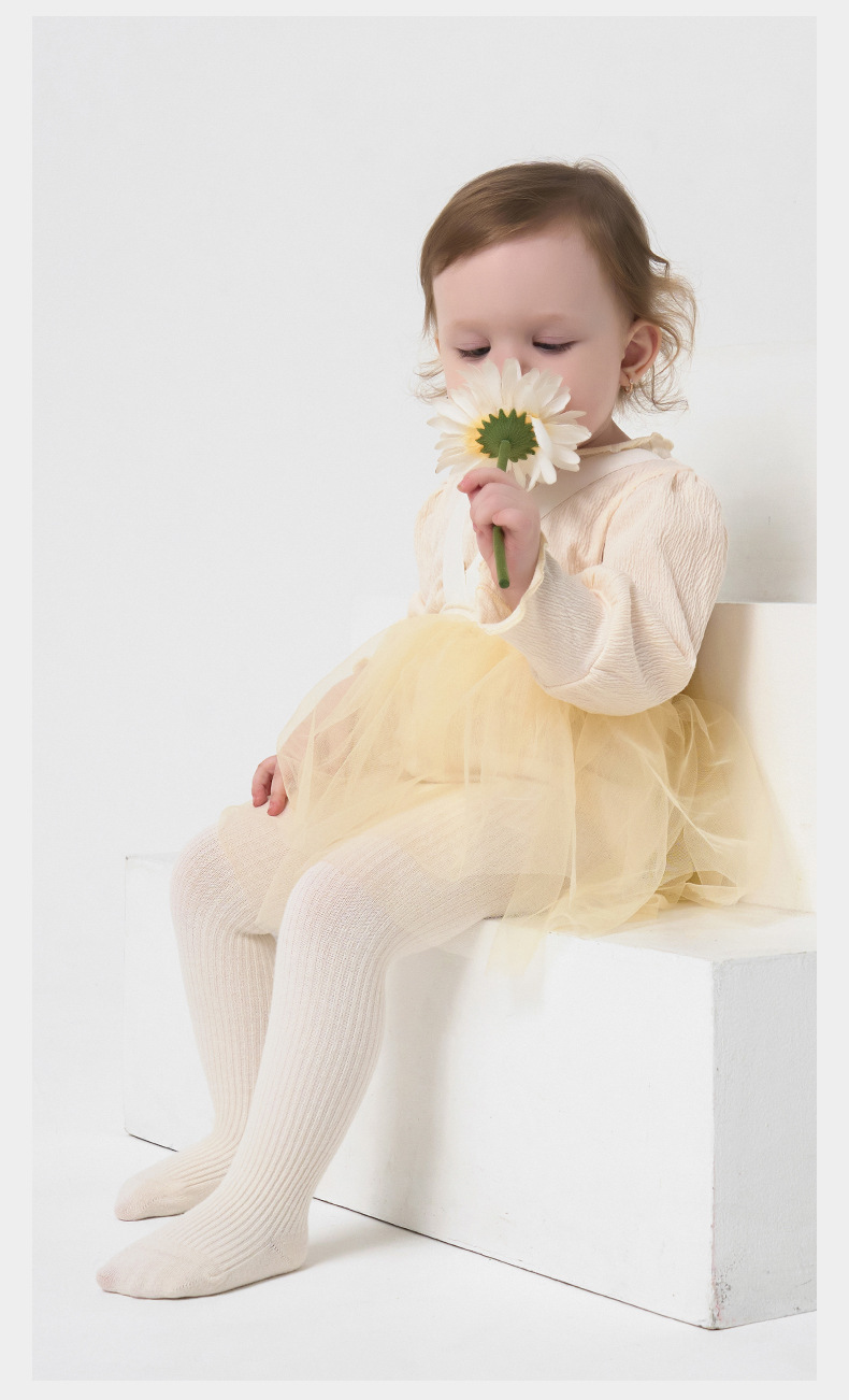 春と秋の薄い子供のレギンスの麻の模様の赤ちゃんの靴下の白い足のダンスの靴下の子供の保温のタイツ
