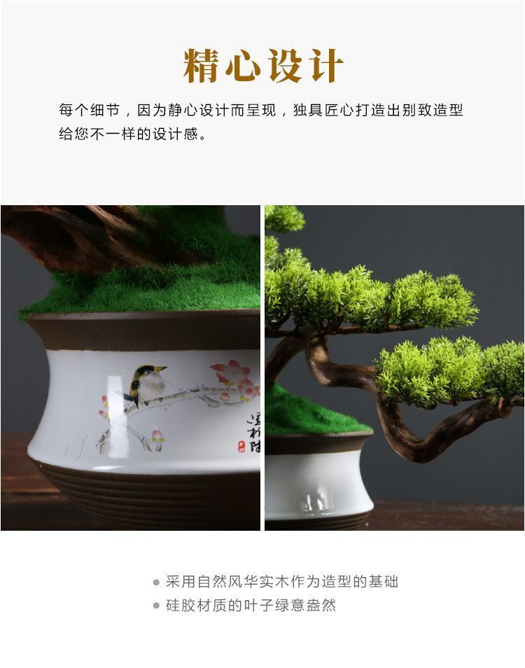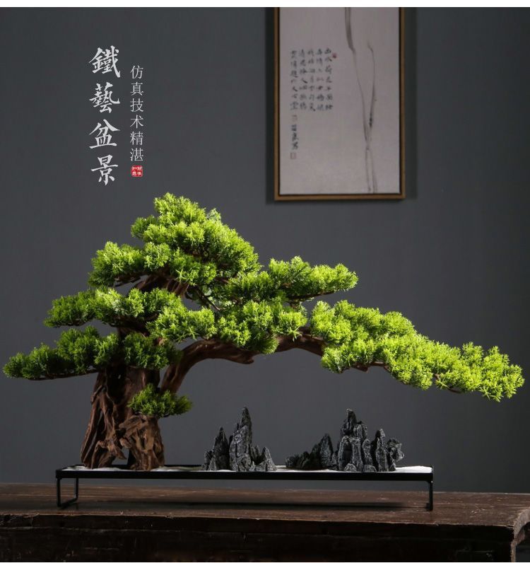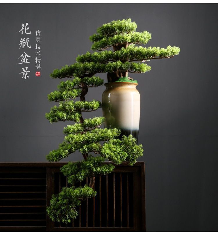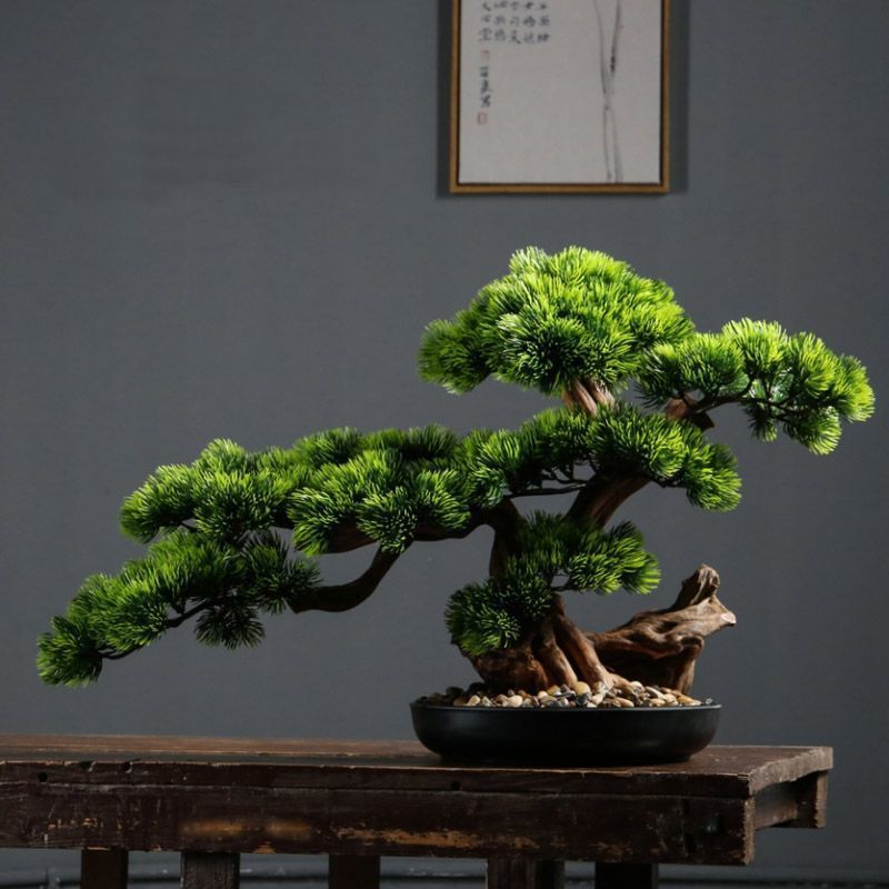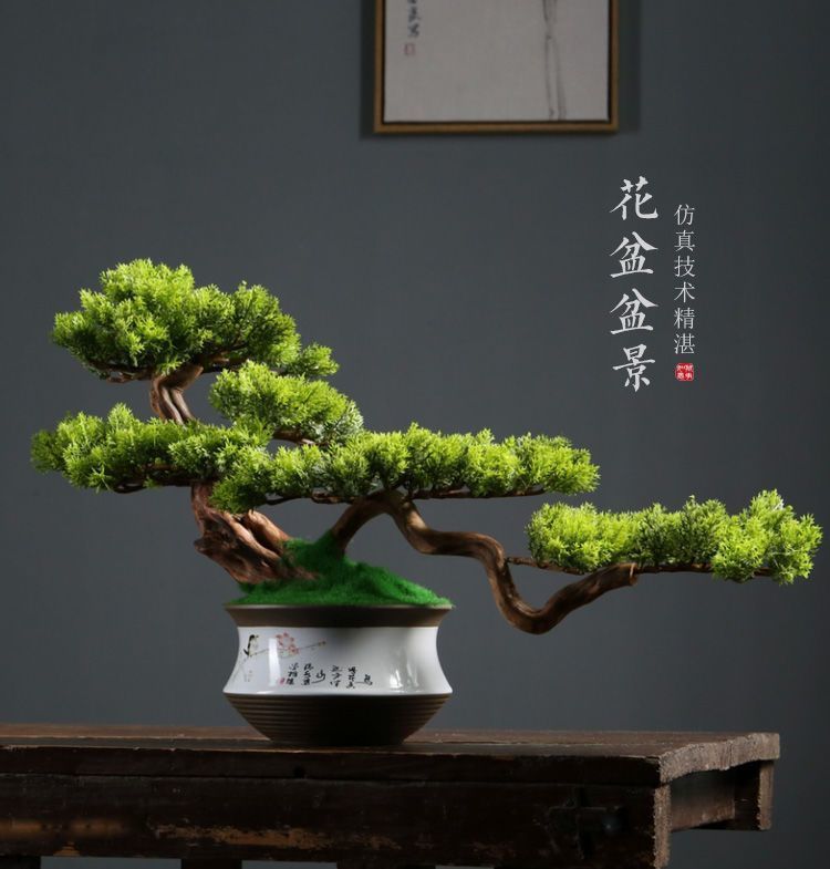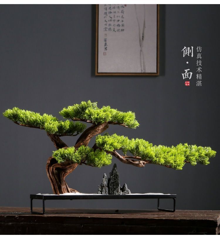 客を迎えて松の植物の盆栽の事務室の置物を迎えます。