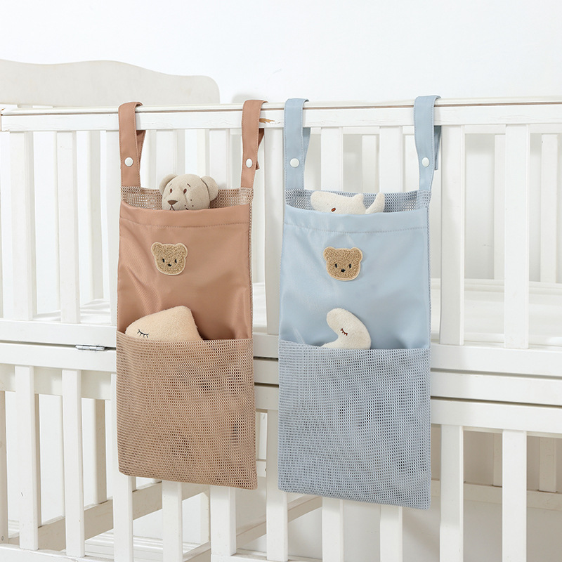 婴儿床边储物袋置物袋宝宝围栏尿布收纳袋收纳挂袋网孔透气多功能