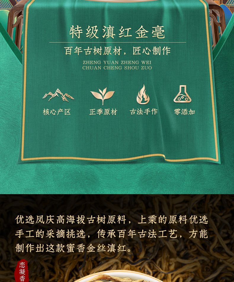 恋凝香特級楚紅金ミリ紅茶2024新茶本場鳳慶金糸蜜香耐泡型茶葉缶