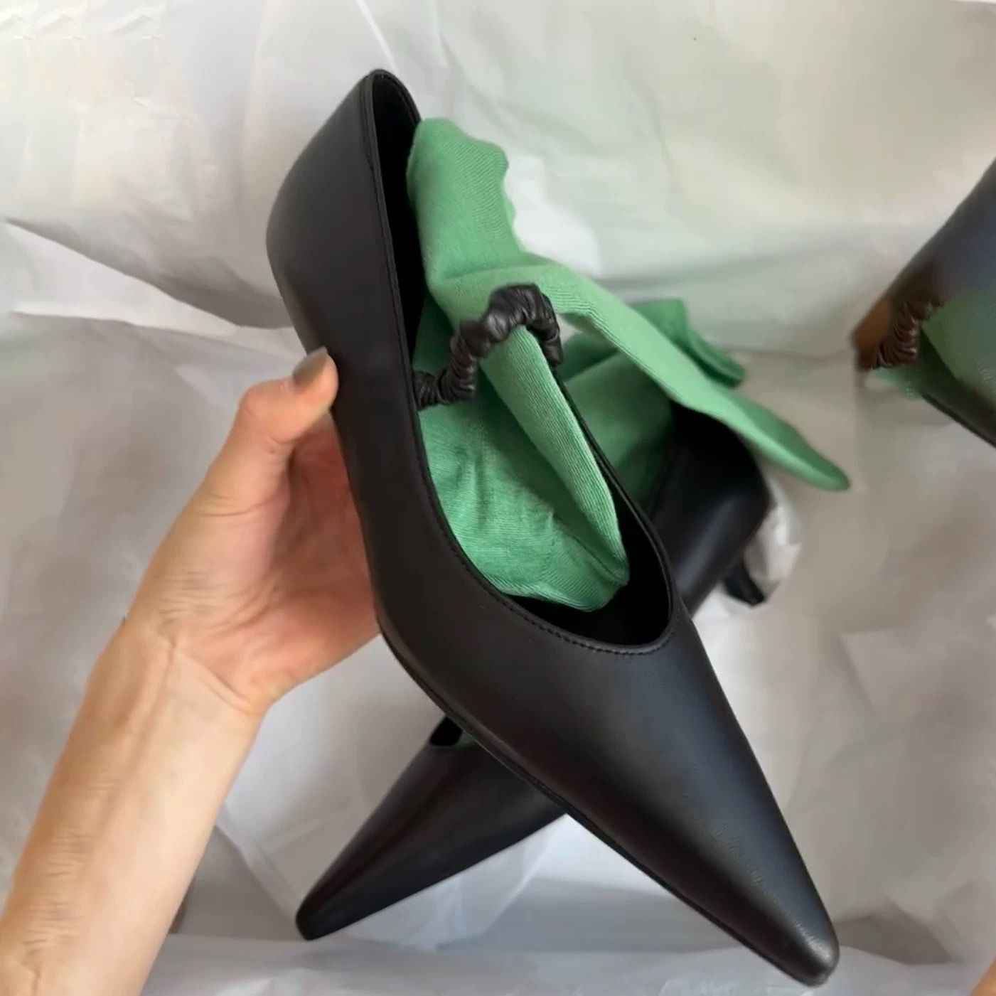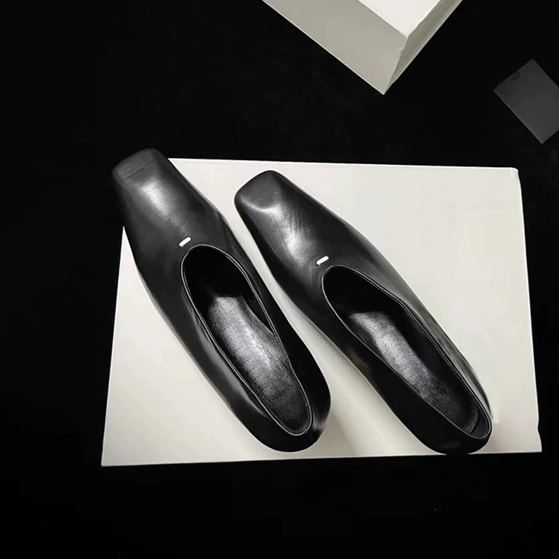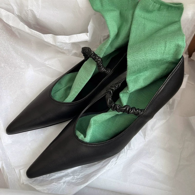 牛革バージョン~ミニマリストスタイルの小さなウェッジヒールポインテッドトゥパンプス女性用2025春秋新作通勤フラットシューズ女性用