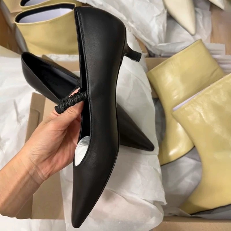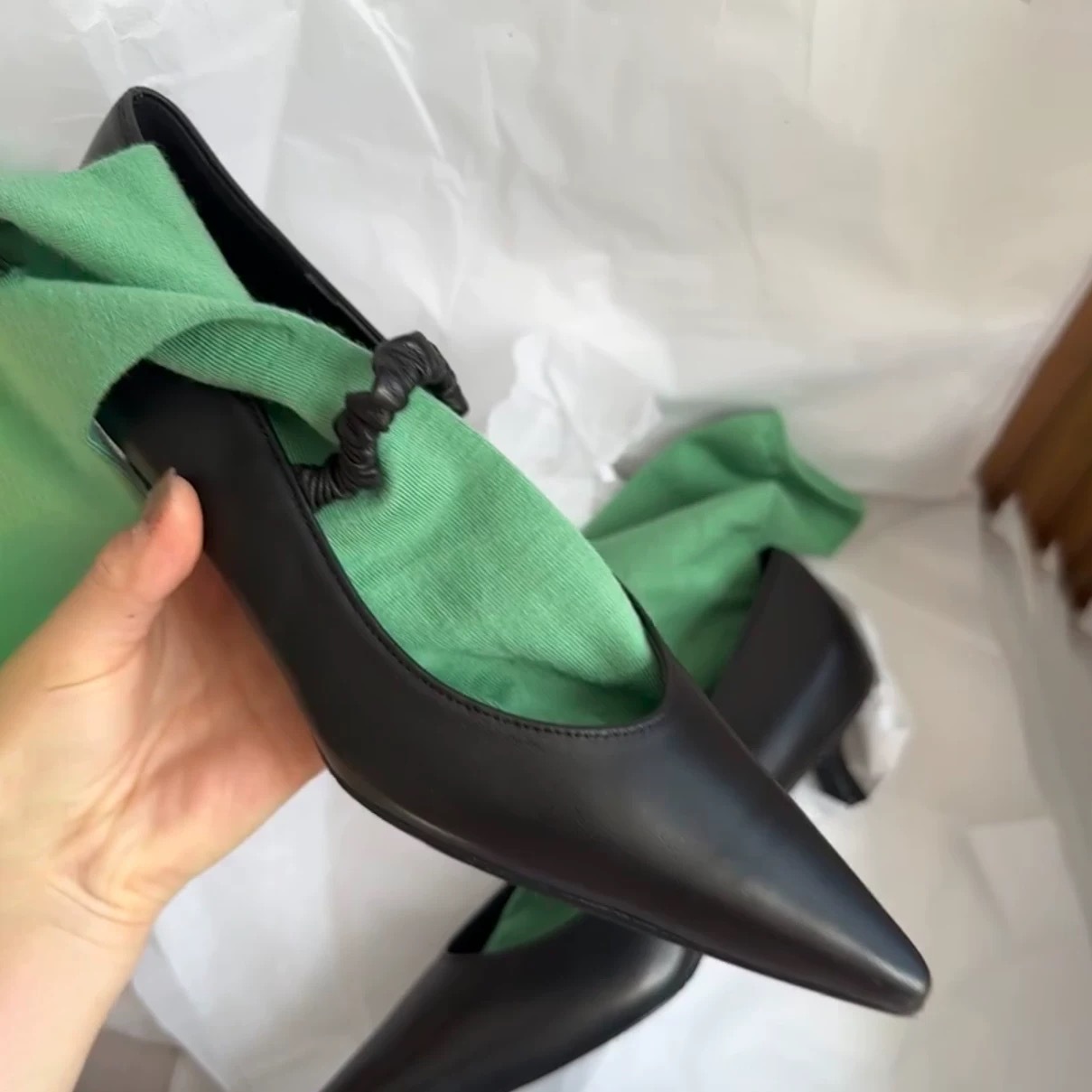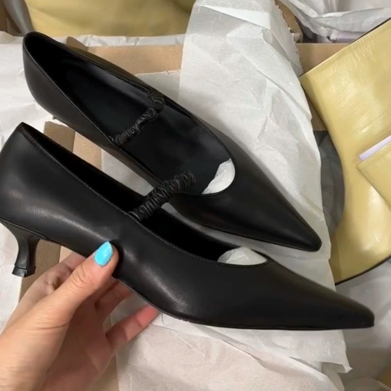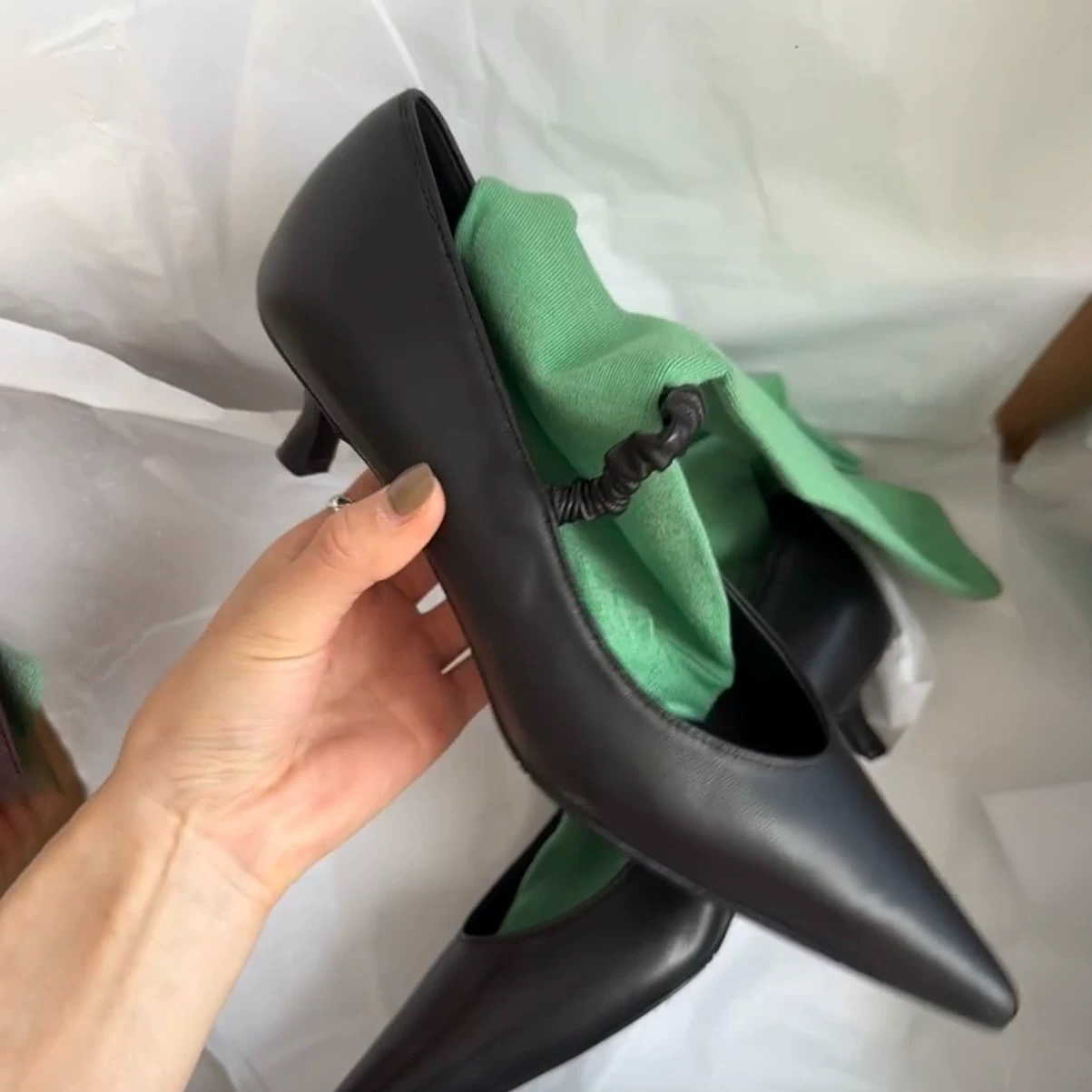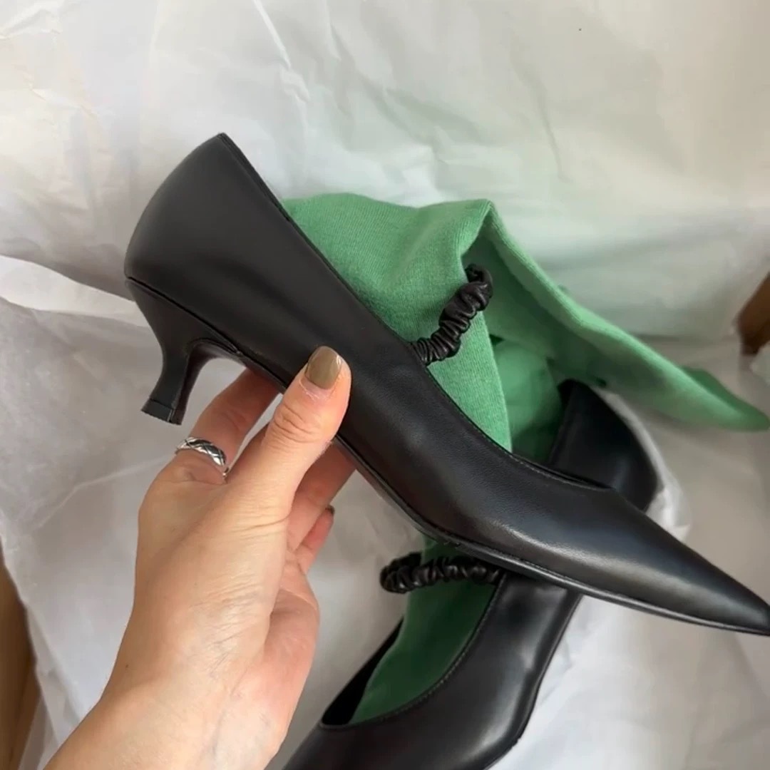 牛革バージョン~ミニマリストスタイルの小さな猫のヒールとポインテッドトゥの女性用パンプス2025秋通勤スティレットヒールの小さな革靴