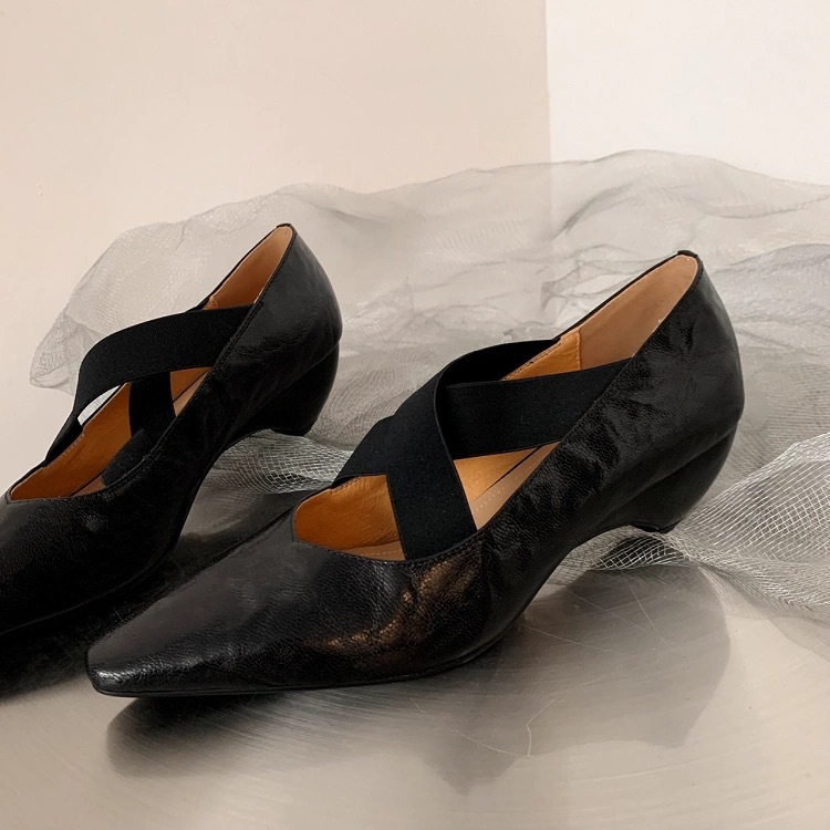 本革のフランス式の小さい衆の錐の形と角の頭の交差はメアリーの珍の靴の女性の2025年の春の百合の中で靴とシングルの靴を持ちます。