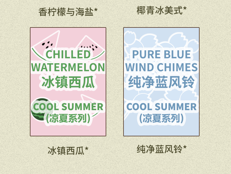 色の分類 011-A アイススイカ,011-B ピュアブルー風鈴,011-C ココナッツグリーンアイスアメリカンスタイル,011-D ベルガモットとシーソルト
