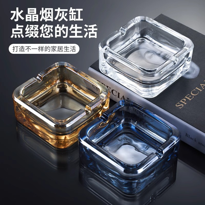 軽豪華客間家庭用四角い灰皿ほこり防止ガラス灰皿個性オフィス灰皿ホテル商用
