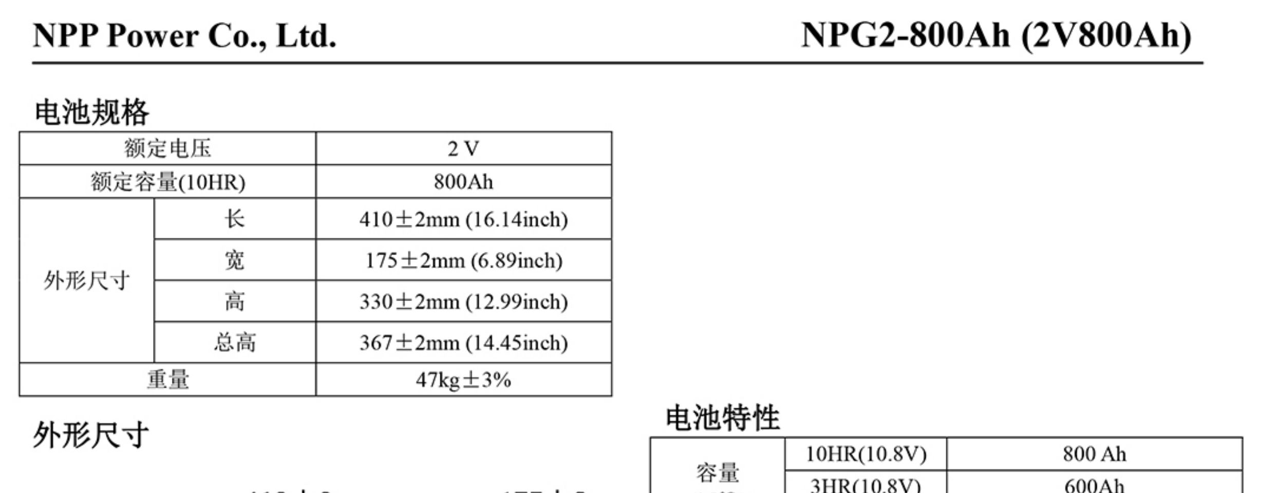 モデル NPG2-100Ah,NPG2-150Ah,NPG2-200Ah,NPG2-300Ah,NPG2-400Ah,NPG2-500Ah,NPG2-600Ah,NPG2-800Ah,NPG2-1000Ah,NPG2-1200Ah,NPG2-1500Ah,NPG2-2000Ah,NPG2-3000Ah