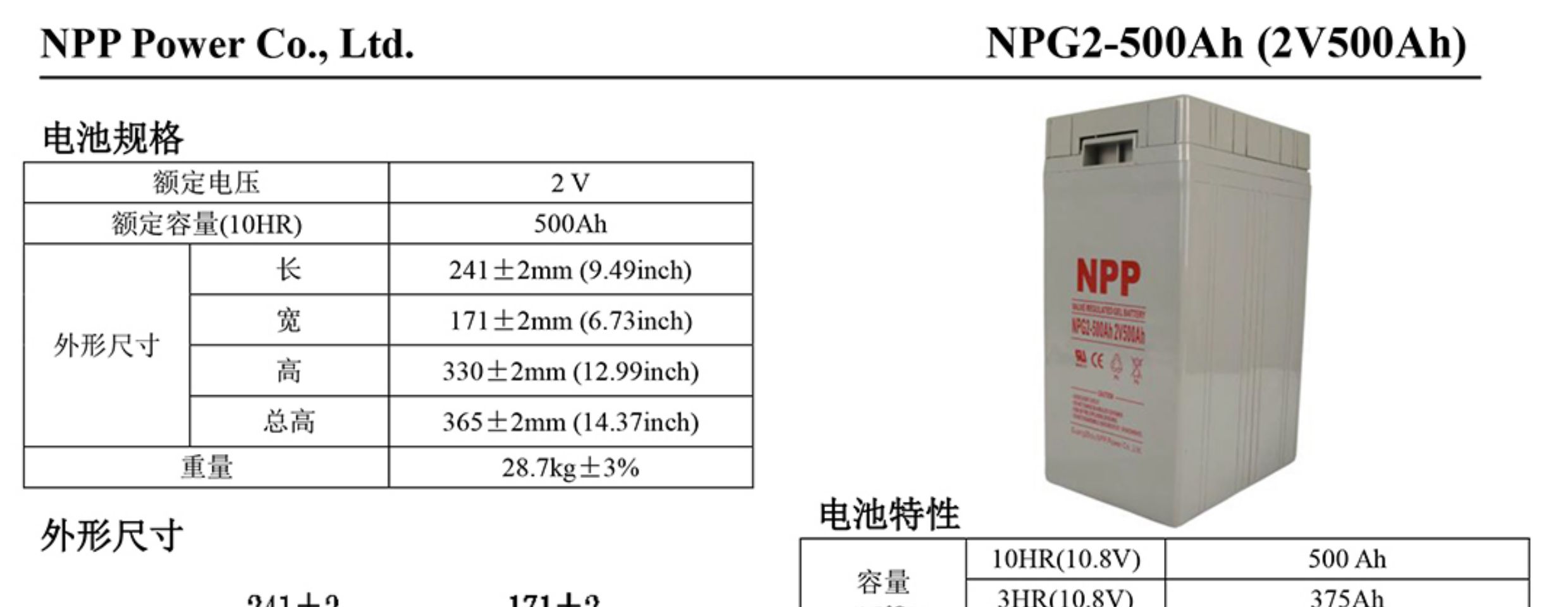 NPP耐普蓄電池NP2-200Ahコロイドメンテナンスフリー電池2V200AH変電所直流系統500