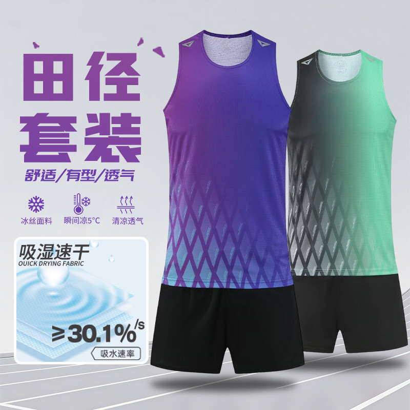 陸上トレーニング服セット男性短距離マラソン速乾ベスト競技運動体試験陸上ランニング服女性