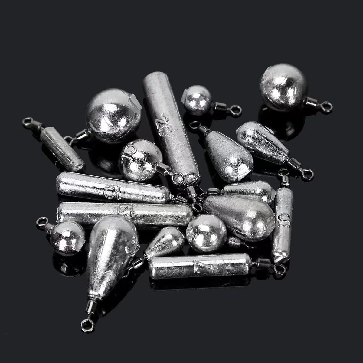 卸売フリーフィッシングセット、ルアー用リードシンキング、スイベル、円筒形ウォータードロップ、ラウンドフィッシングシンキング、アウトドアフィッシング