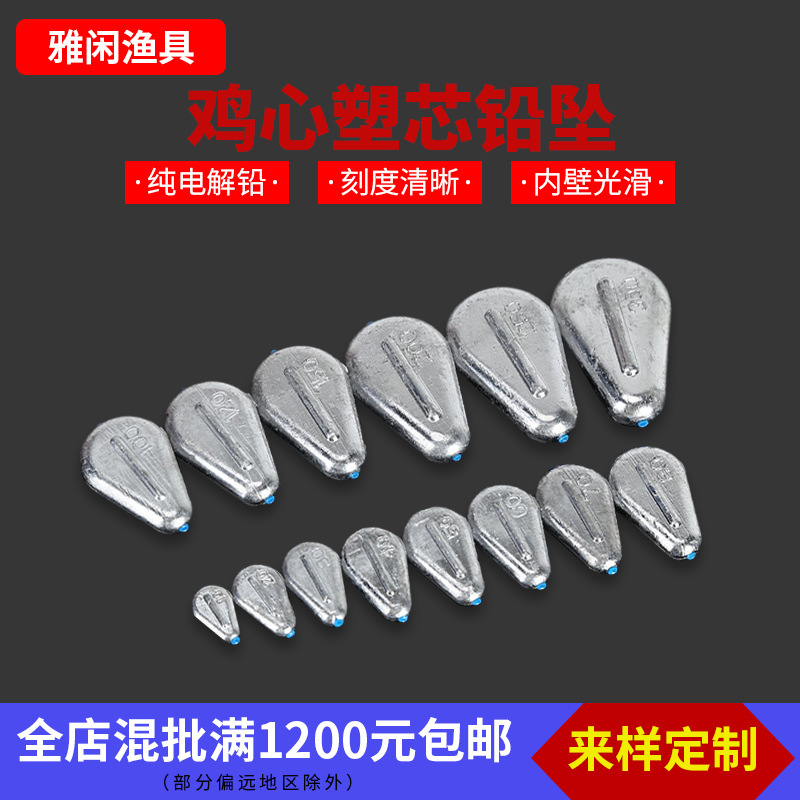 新しいスタイルのチキンハートプラスチックコア鉛ペンダントフラットペンダント海ロッド遠投通芯釣り鉛ペンダント鉛塊漁具アクセサリー卸売