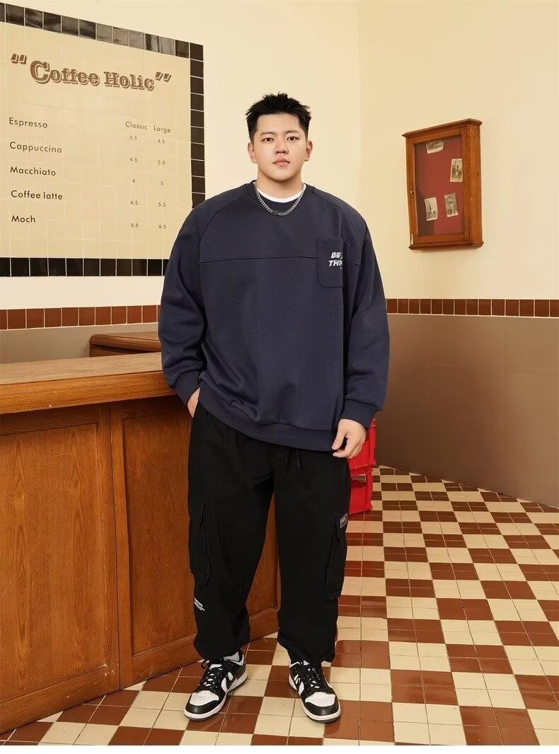 ファッションブランドの大きいサイズの紳士服の丸首の衛衣春と秋の新型のカジュアルな頭の太った人はゆったりしています。
