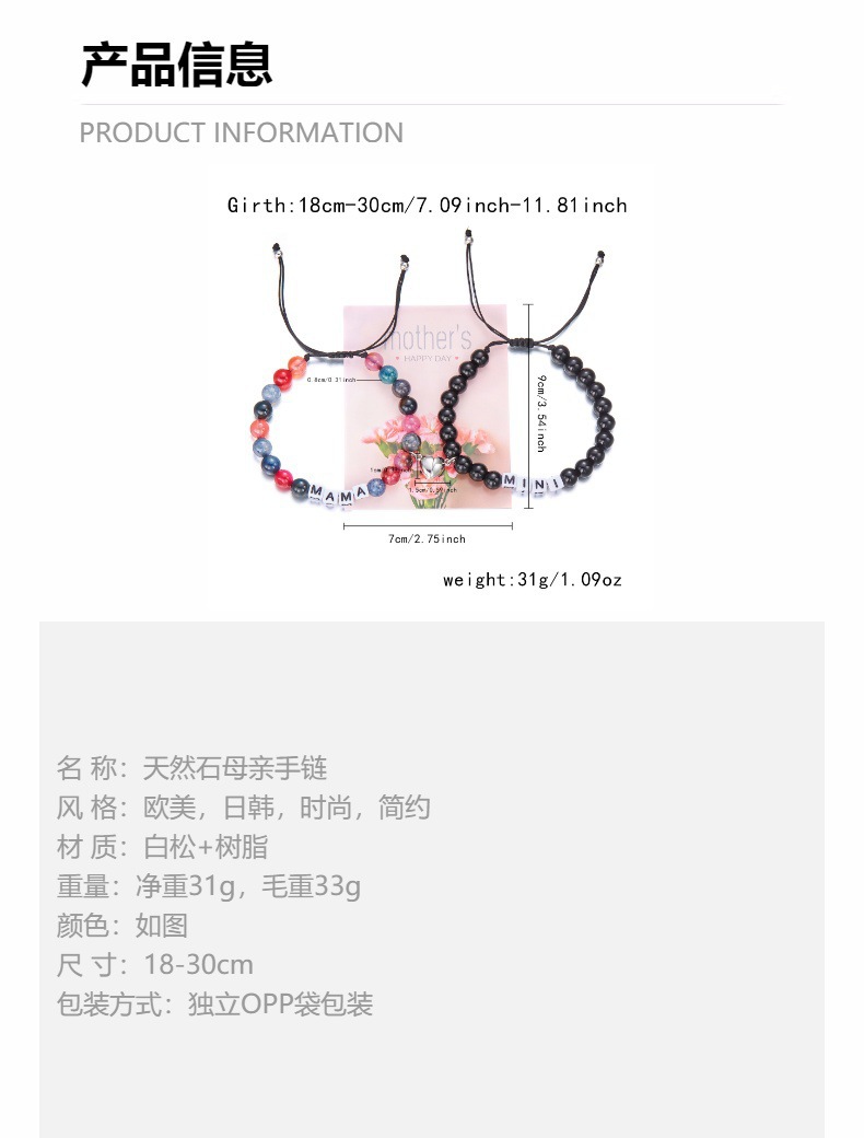 クロスボーダー新型天然石母の日親子手串ブレスレット