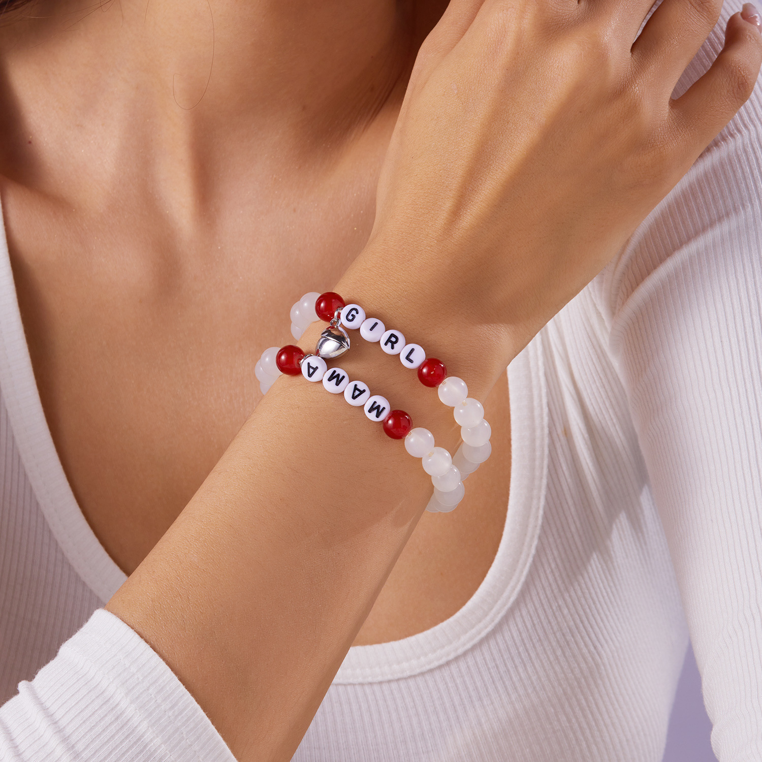 メーカー直販アルファベットmama母の日ソフト陶水晶ブレスレットセット創意百合真珠手串女