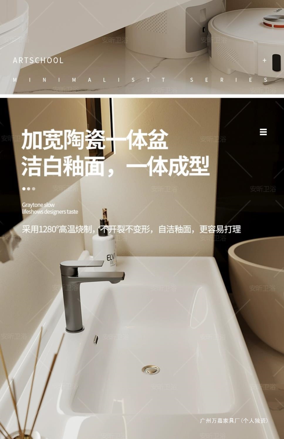 一体型セラミック洗面器